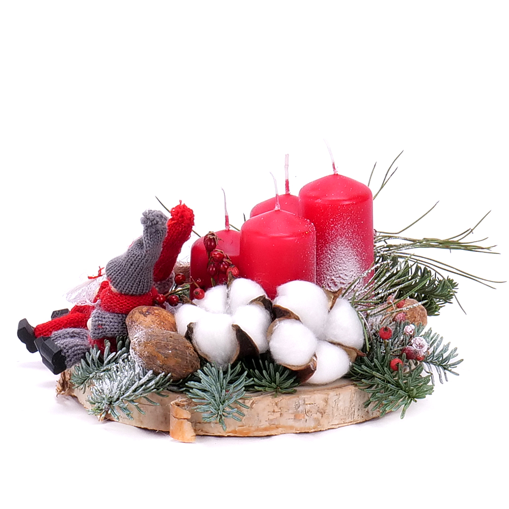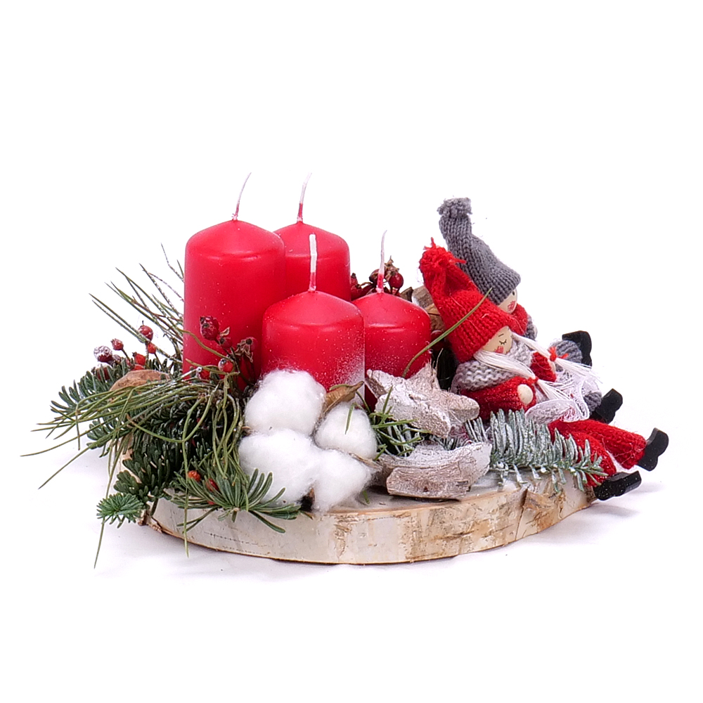 NOVÉ Adventný svietnik na dreve červené sviečky