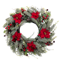 Veniec čačinový L89 vianočná ruža 55cm umelý