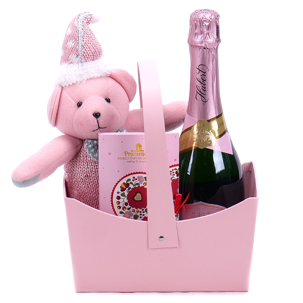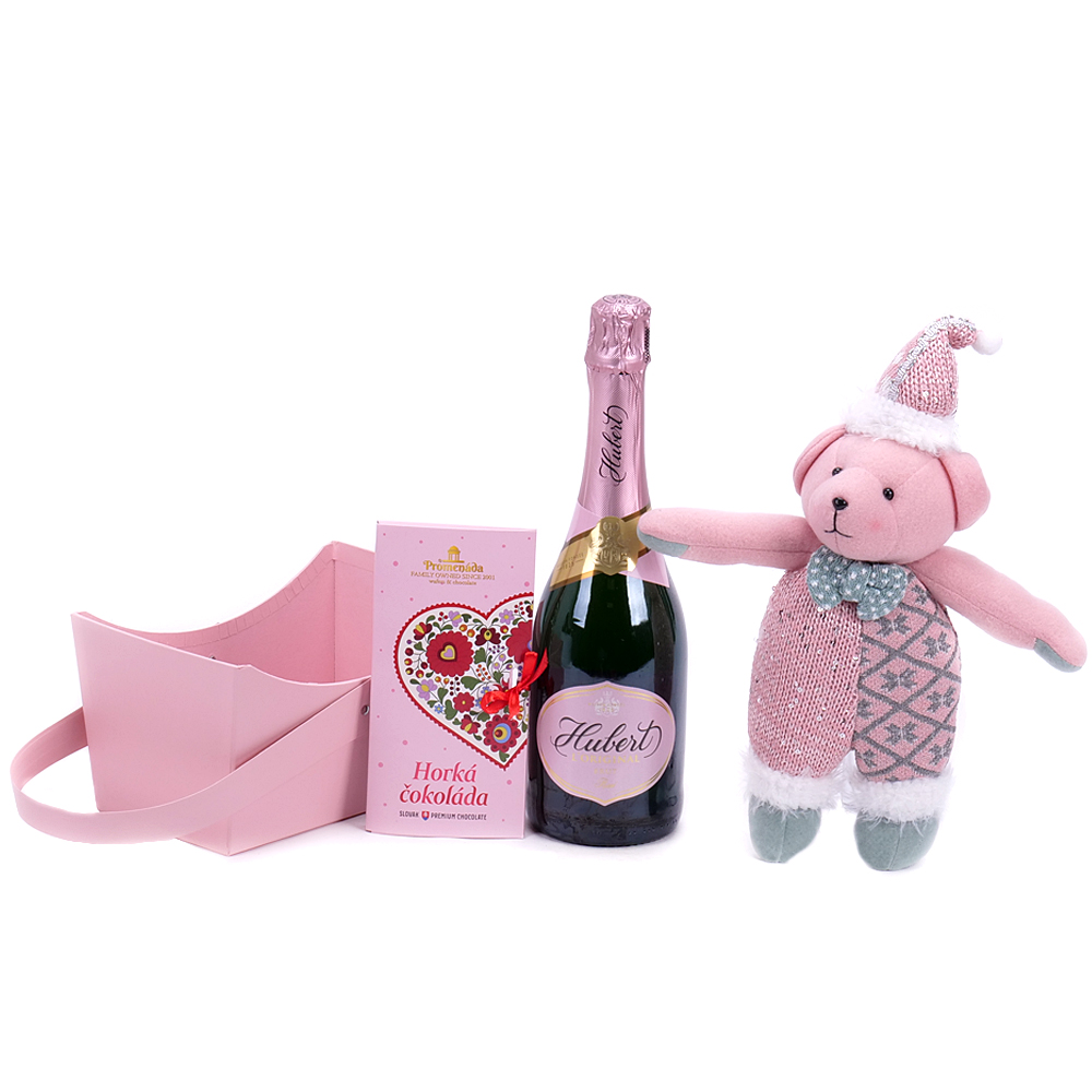 Potešte svojich blízkych a darujte im štýlovou darčekovú tašku s horkou čokoládou - 1 ks, dekoračným plyšovým mackom ružovej farby - 1 ks a sektom Hubert original rose brut - 1 ks. ... Viac