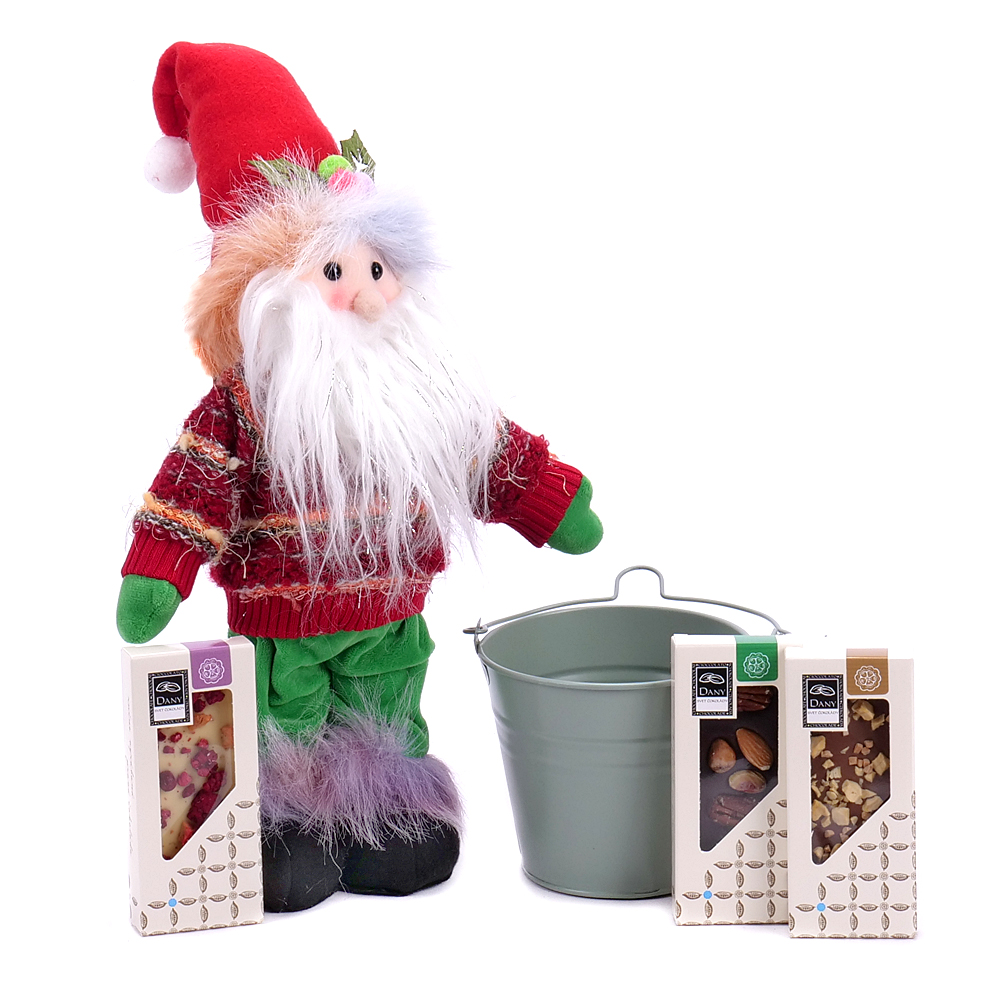 Darčekový set zložený z plyšovej postavy Mikuláša s plechovým vedierkom a kolekcie troch ručne robených čokolád - mliečna, biela a horká. ... Viac