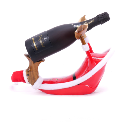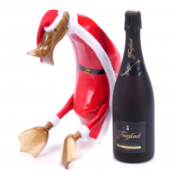 Darček vhodný na silvestrovký večer. Drevený stojan - vianočná dekoračná kačka a sekt Freixenet Cordon Negro Brut 0,75 l.