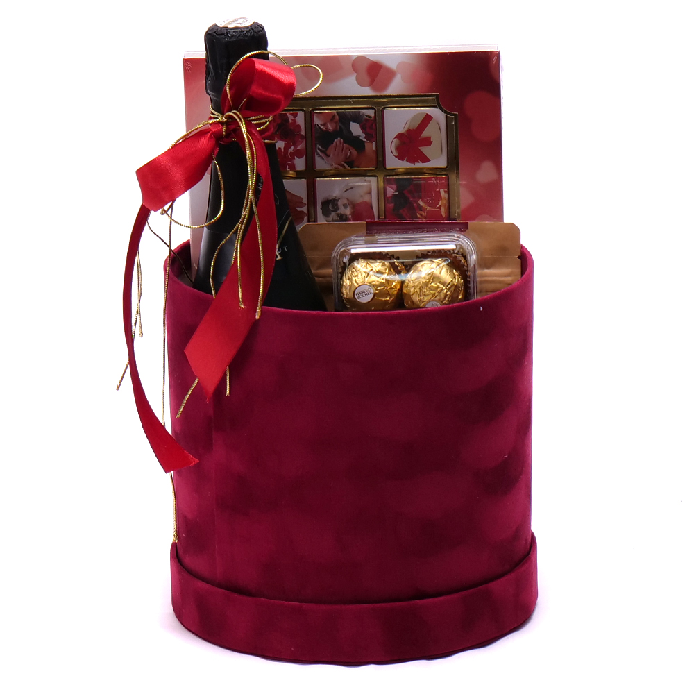 Romantický darčekový box v zamatovom červenom prevedení so sladkosťami a kvalitným Freixenetom. ... Viac