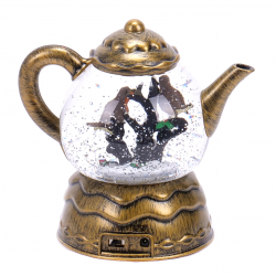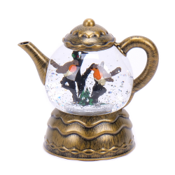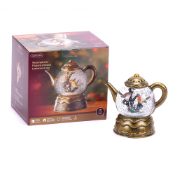 Dekoračná vianočná kanvica do interiéru s LED osvetlením a pohybujúcim sa snehom.