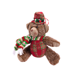 Plyšový medvedík s vianočným oblečením, šálom a čiapkou. Vhodný darček k pre malých i veľkých.