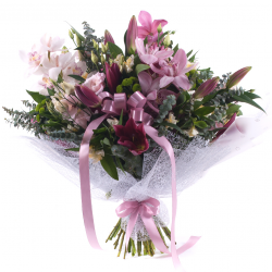 Darujte Vašim blízkym veľkú kyticu plnú farebných kvetov. Kytica je aranžovaná z farebných orchideí, ľalií, chryzantém, lisianthusu, alstromérií a eucalyptu. Je zabalená v dekoračnom papieri a dozdobená stuhou. Je dokonalým darčekom na narodeniny, meniny, výnimočné dni, zásnuby, či Valentín. ... Viac