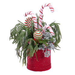 Elegantný vianočný aranžmán z kvalitnej umelej čečiny, doplnený vianočnými umelými ozdobami prinesie do domova sviatočnú atmosféru bez starostí s opadávaním ihličia. Aranžmán pôsobí prirodzene, harmonicky a krásne ozdobí stôl či komodu počas vianočných sviatkov.