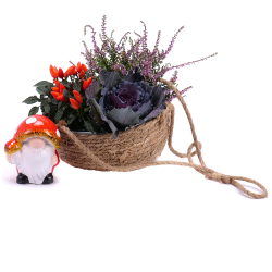 Vres patrí medzi najkrajšie kvitnúce rastliny vhodné na terasy či balkóny v jesennom období. Set obsahuje ratanový kôš na zavesenie - 1 ks, vres - 1 ks a okrasná kapusta - 1 ks, okrasné papričky - 1 ks.