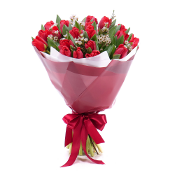 Svieža kytica aranžovaná z kombinácie tulipánov a drobných kvietkov Waxflover. Darujte ju na meniny, narodeniny, alebo len tak pre potešenie. ... Viac