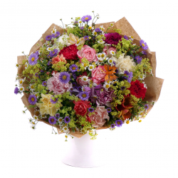 Kytice sa vyznačujú originálnou väzbou vo farebnom ozdobnom papieri previazané stuhou. Okrúhla kytica strednej veľkosti, vhodná pre rôzne príležitosti od narodenín až po rôzne výročia alebo na rozjasnenie bežného pracovného dňa v práci.