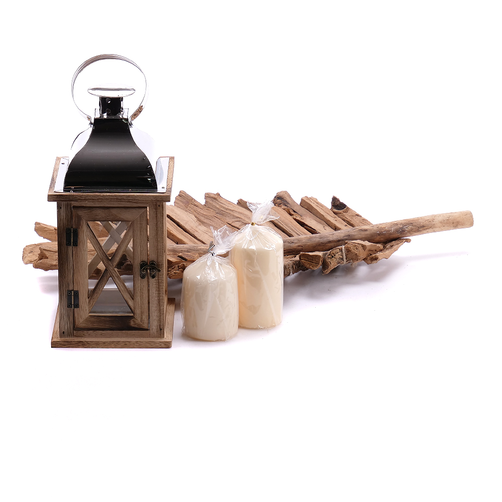 Darčekový set s dreveným dekoračným lampášom, sviečkami a ručne robenou drevenou dekoráciou v tvare listu. ... Viac