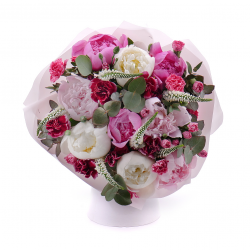 Kytica aranžovaná z ružových pivónií, klinčekov a dekoračnej zelene. ... Viac