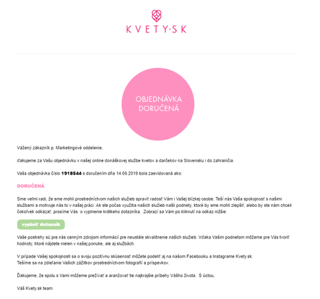 6. Ako sa dozviem, že kvetinový darček bol doručený?