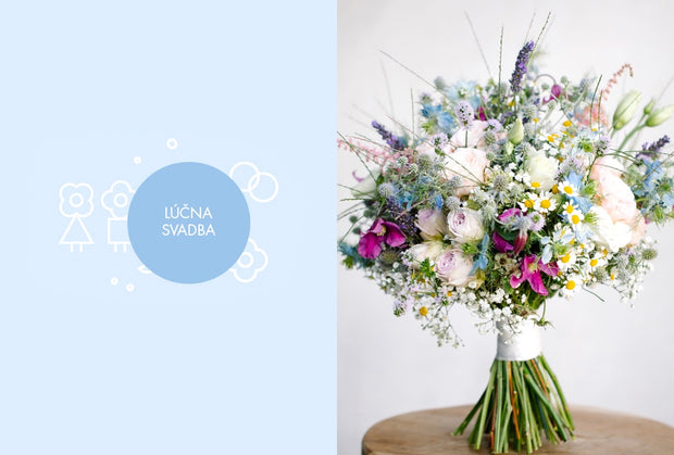 Lúčne kvety inšpirujú nie jednu nevestu. V tomto duchu sa niesla aj svadobná výzdoba a kytica, ktorú sme pripravili pre dvojicu v máji. Hravá žlto-modro-biela kombinácia kvietkov pripomína práve rozkvitnuté májové lúky.