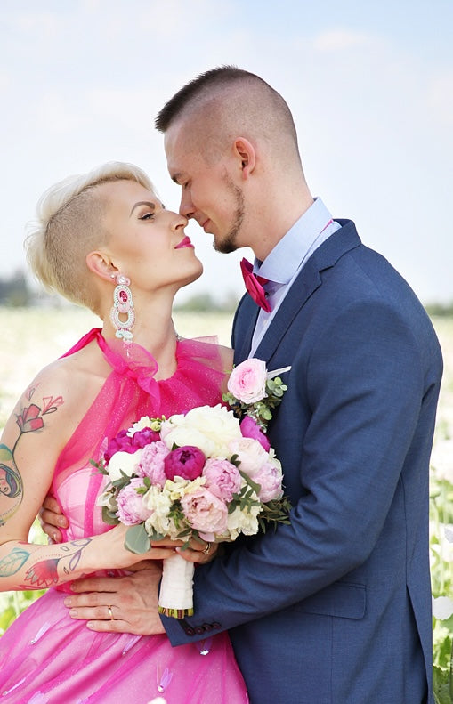 Ivanka je farebná duša a miluje ružovú, preto voľba farebnej kombinácie kvetov do svadobnej kytice bola jasná. Prianím nevesty boli voňavé a jemné pivónie.