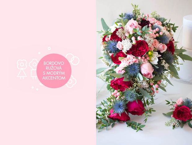 Svadobná kytica bola aranžovaná práve z nich v kombinácii s eukalyptom. Vznešenosť a nádych elegancie dodali kytici bielé frézie. Farebnosťou sa kytica niesla v jemných bielorúžových tónoch s akcentom magenty tak, aby ladila k šatám nevesty.