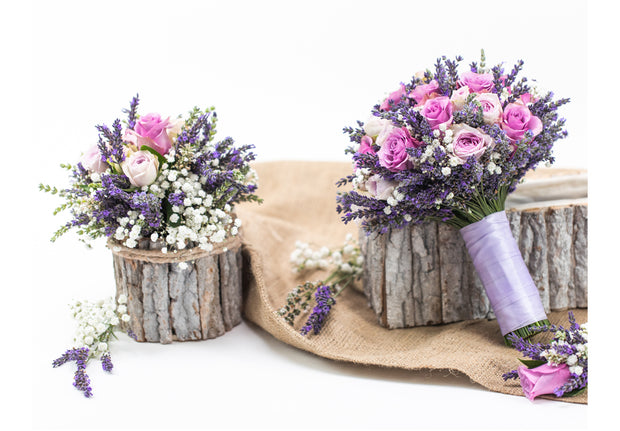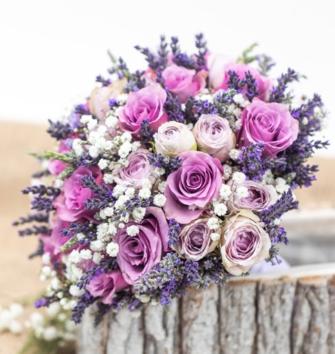 Intenzívna vôňa, úzke modrofialové listy, čno dominantou tejto svadobnej kytice je levandula!