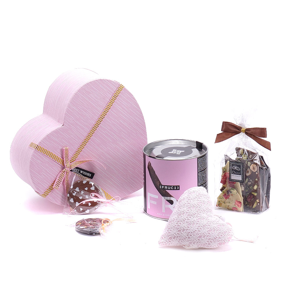Potešte svojich blízkych a darujte im darčekový box v tvare srdca so sladkosťami a dekoračným látkovým srdcom.SloženíFruChé pomarančová kôra v... Čítať viac