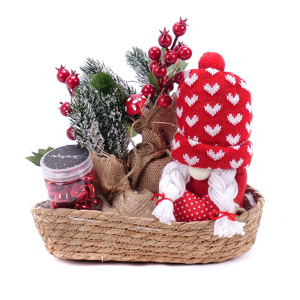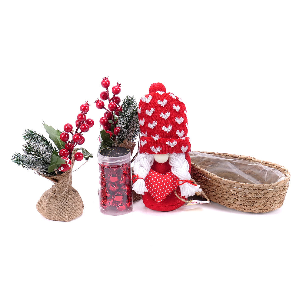 Darčekový ratanový obal s látkovou postavou trpaslíka so srdcom - 1 ks, dekoračnými vianočnými vetvičkami - 2 ks a sadou... Čítať viac