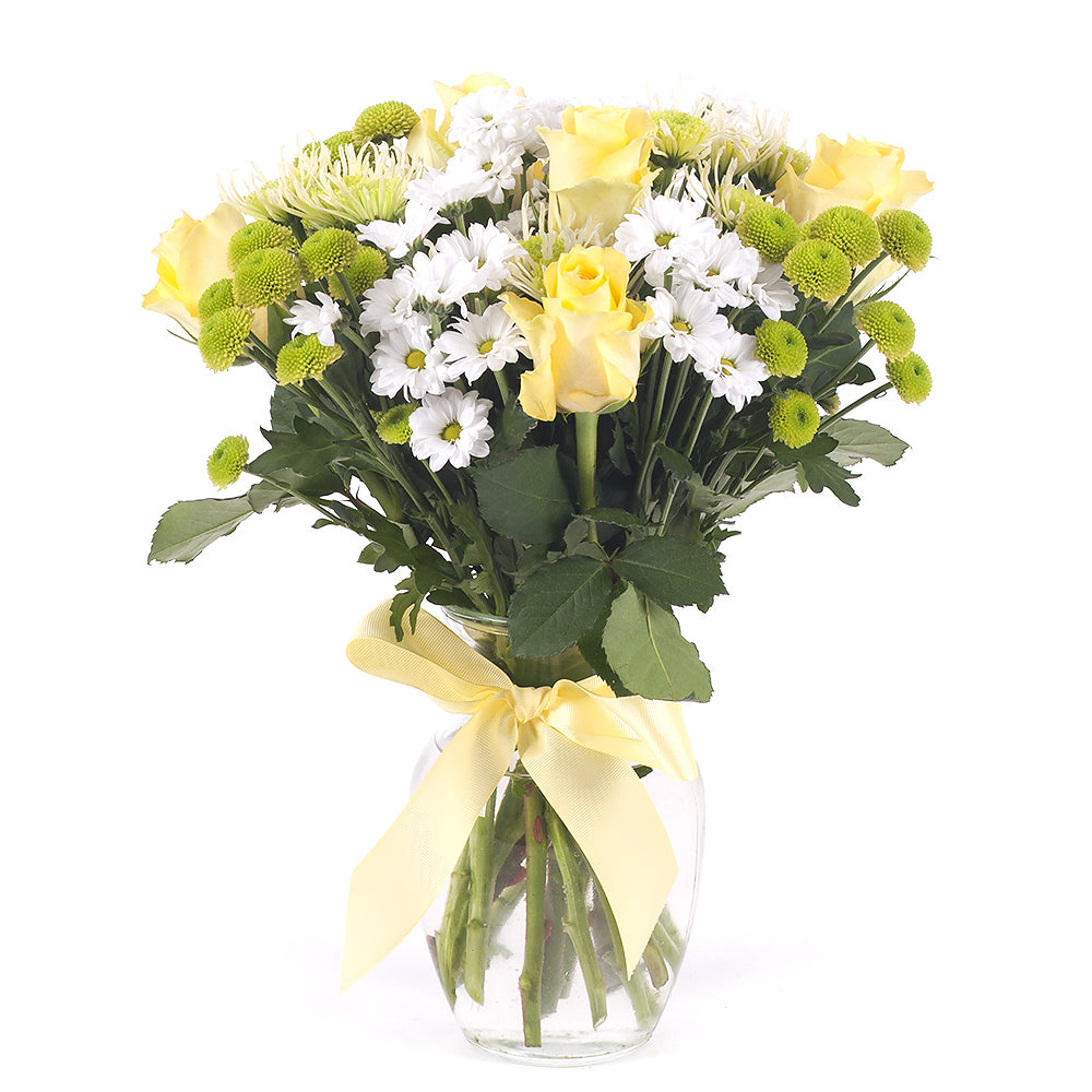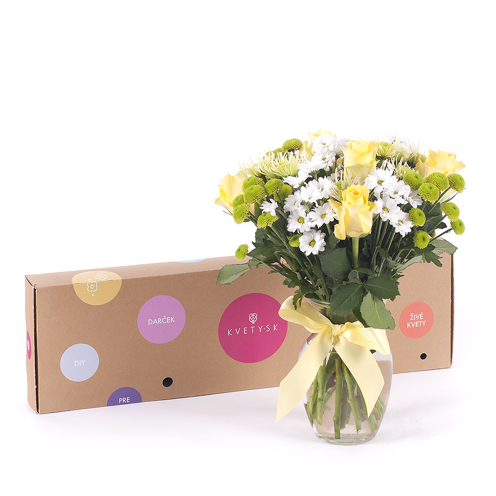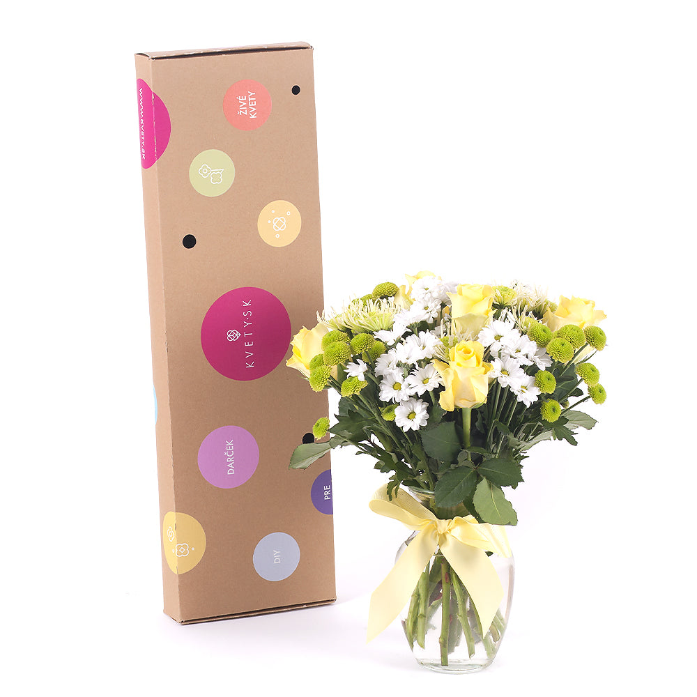 DIY kytica - Žlté ruže a mix Santíniek do vázy