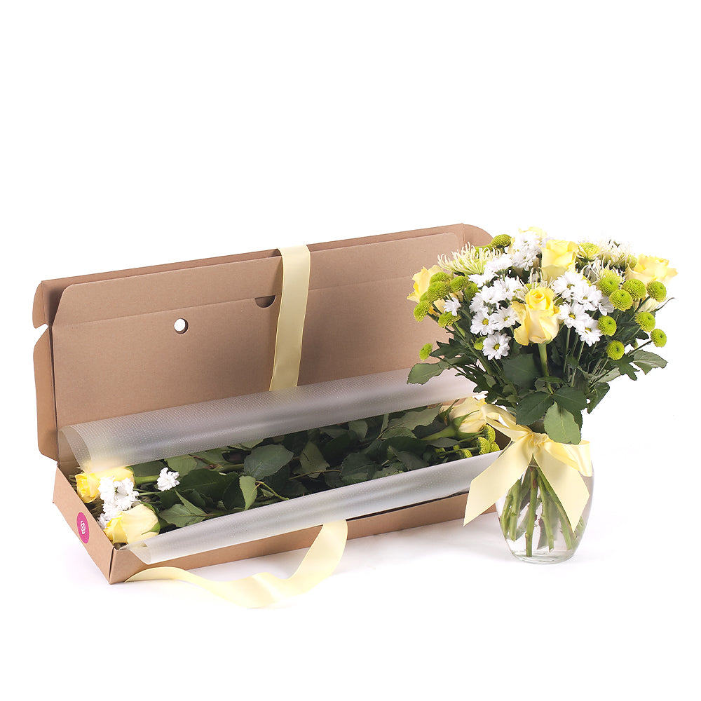 Kvetinové darčeky sú doručované v špeciálnych darčekových krabiciach aby sa počas prepravy nepoškodili, zároveň sú zabalené na vode aby krásne a čerstvé čo najdlhšie. Balíky doručujeme prostredníctvom externých kuriérskych spoločností.