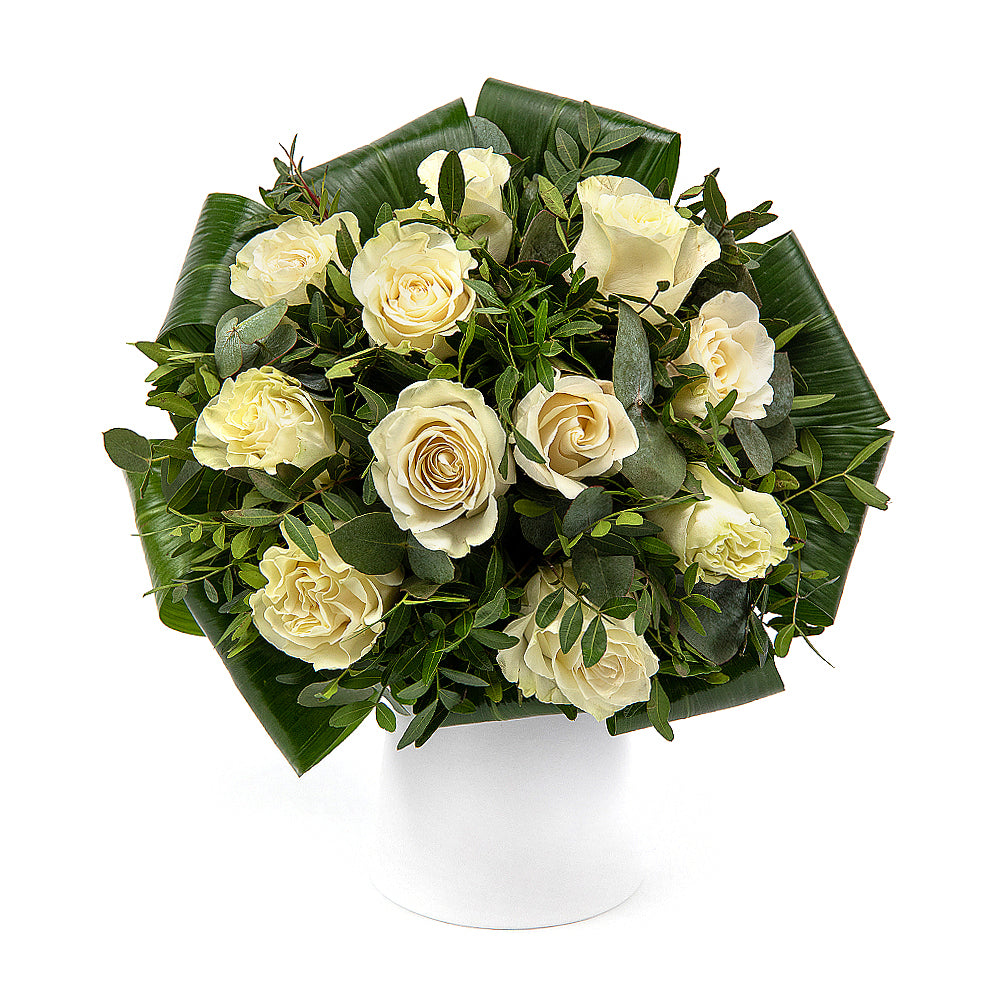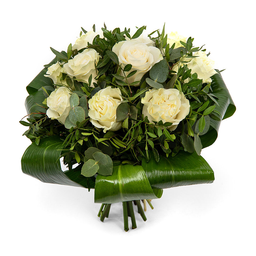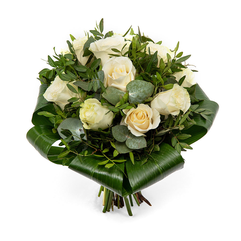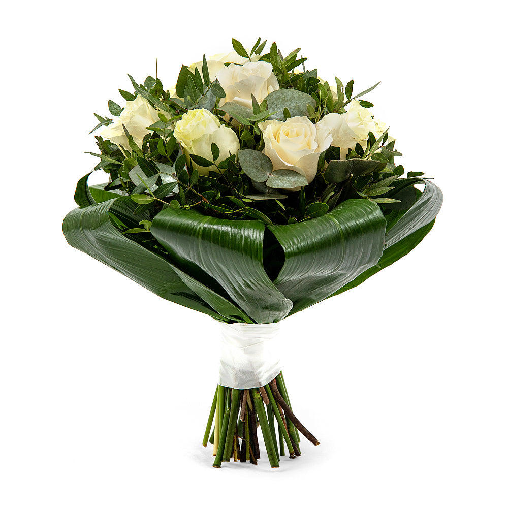 Romantická kytica aranžovaná z bielych ruží, je ideálnym darčekom z lásky, ale aj na sviatky ako sú Valentín, MDŽ alebo narodeniny, či meniny