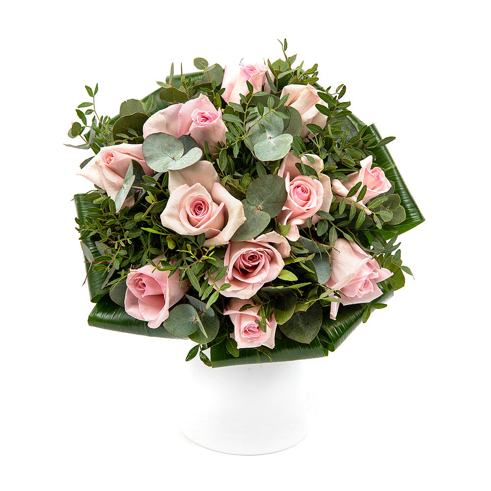 Krásne ružové ruže doplnené dekoračnou zeleňou. Čítať viac