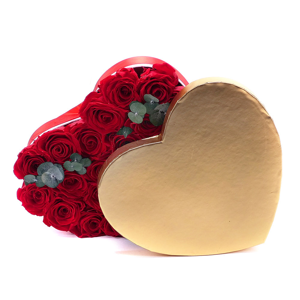 In eterno biele srdce "L" 25 červených ruží eukalyptus