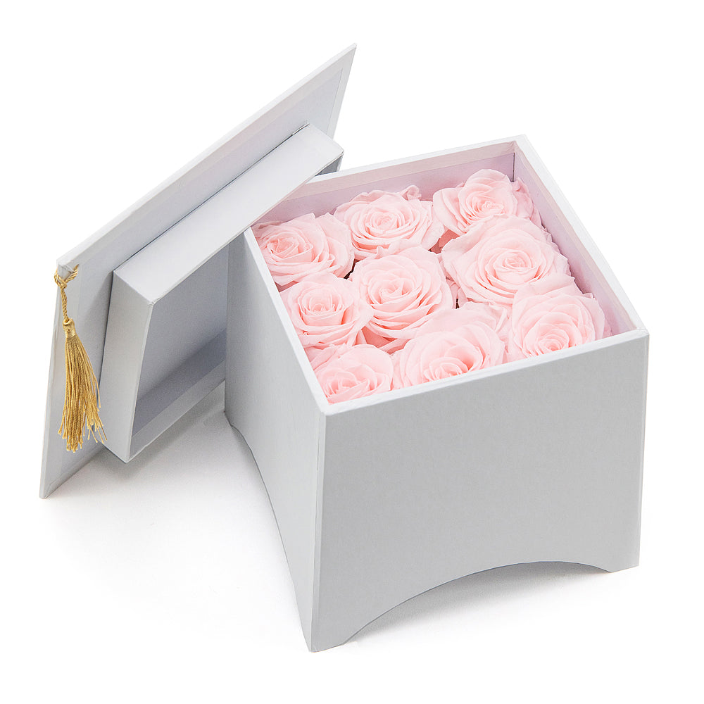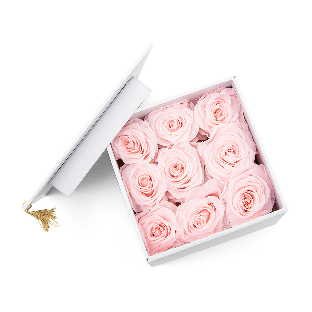 In eterno biely box štvorec 9 ružových ruží