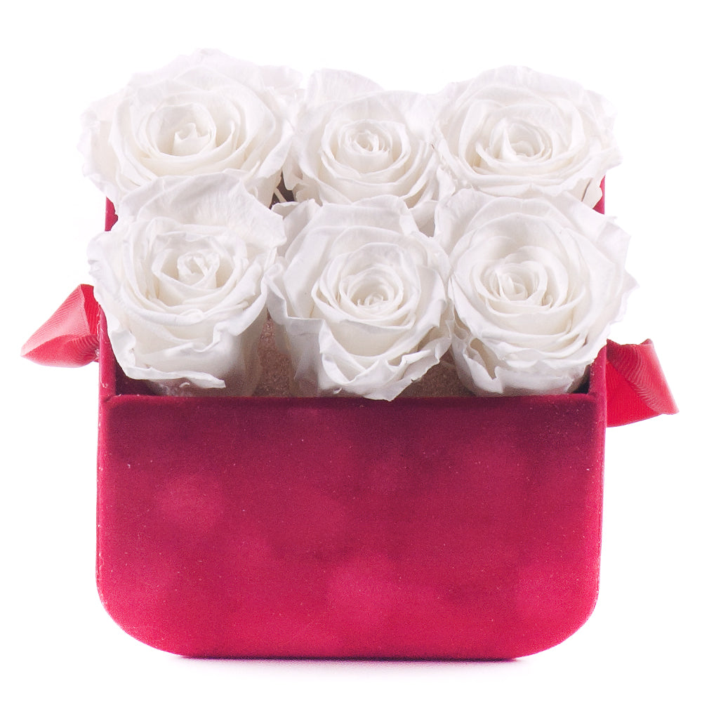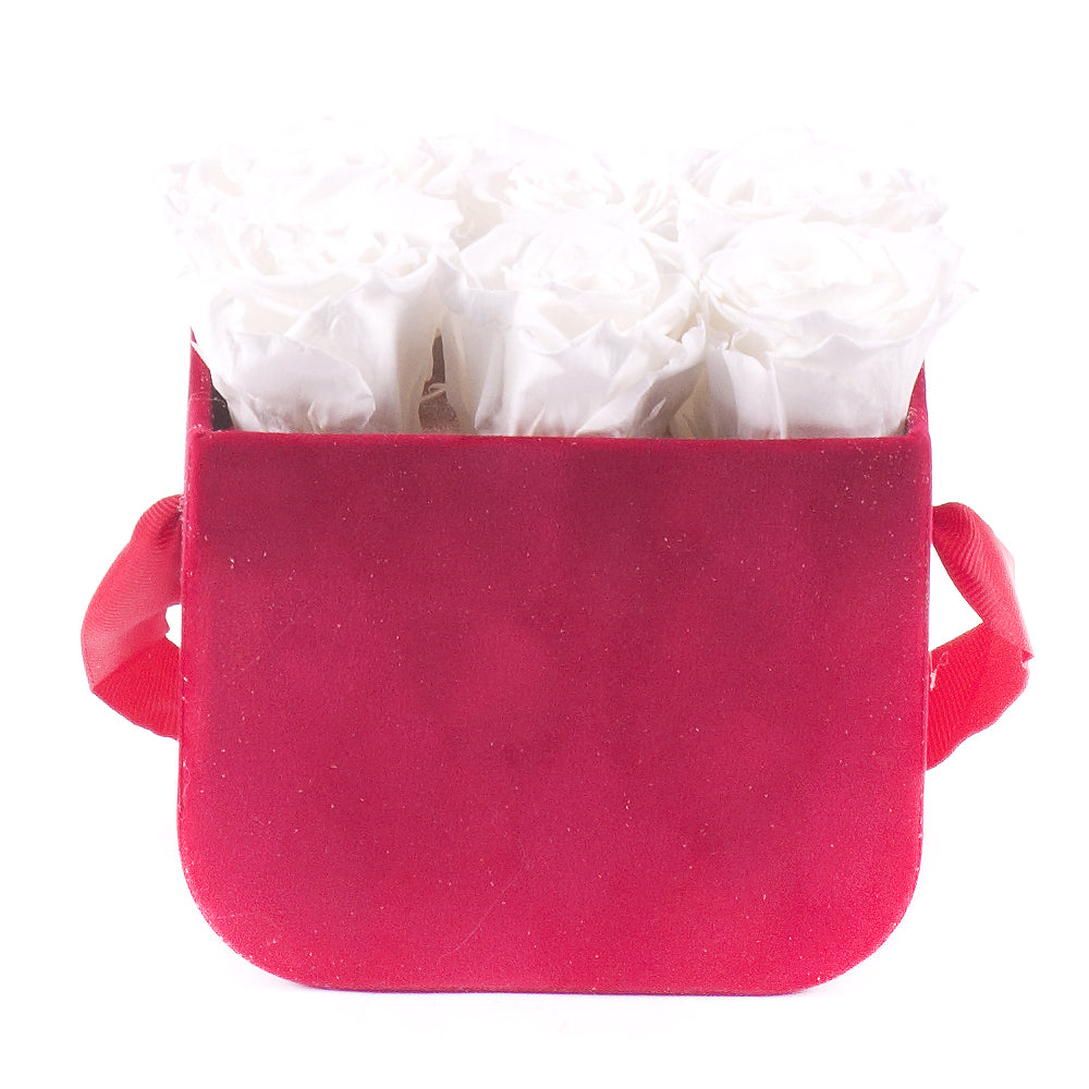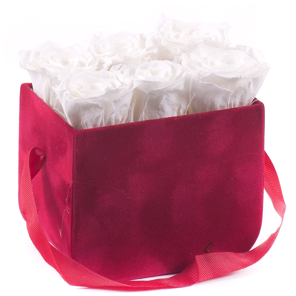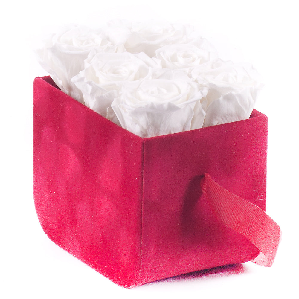 Zamatový box s exkluzívnymi bielymi In eterno ružami. Čítať viac