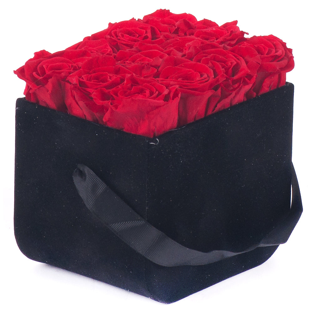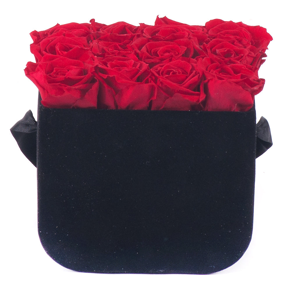 Zamatový box s exkluzívnymi červenými In eterno ružami. Čítať viac