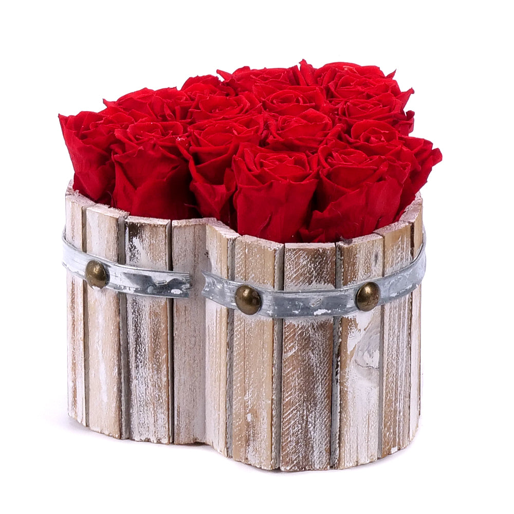 In eterno drevené srdce 15 červených ruží