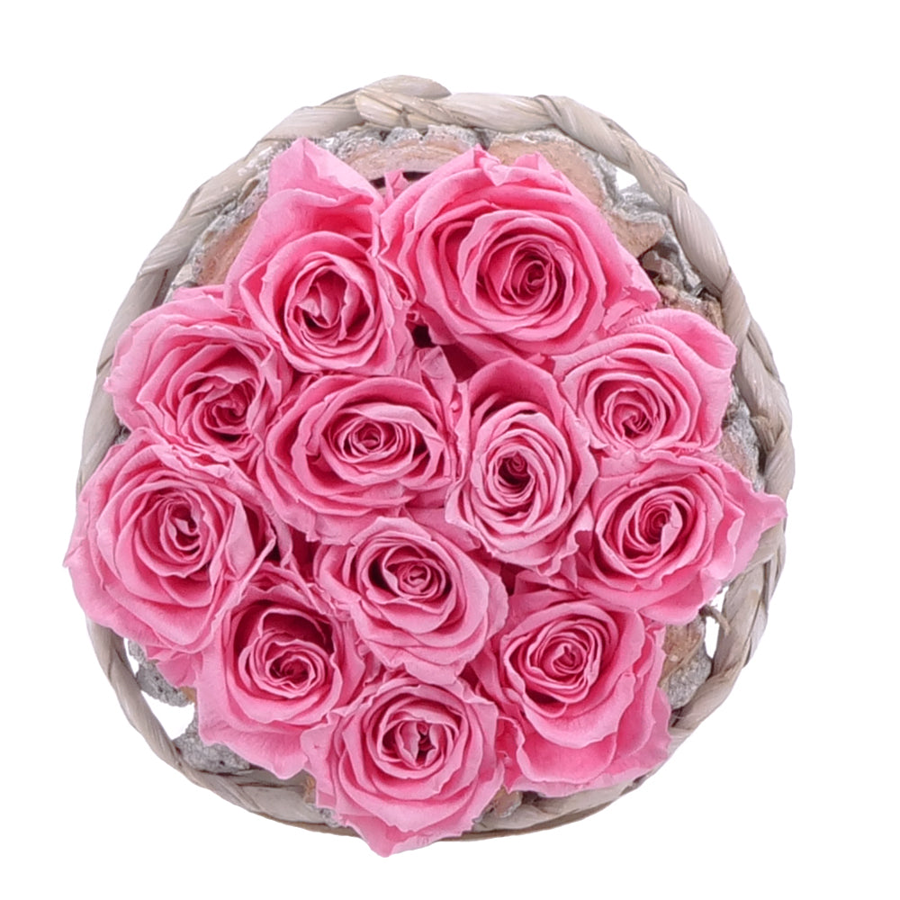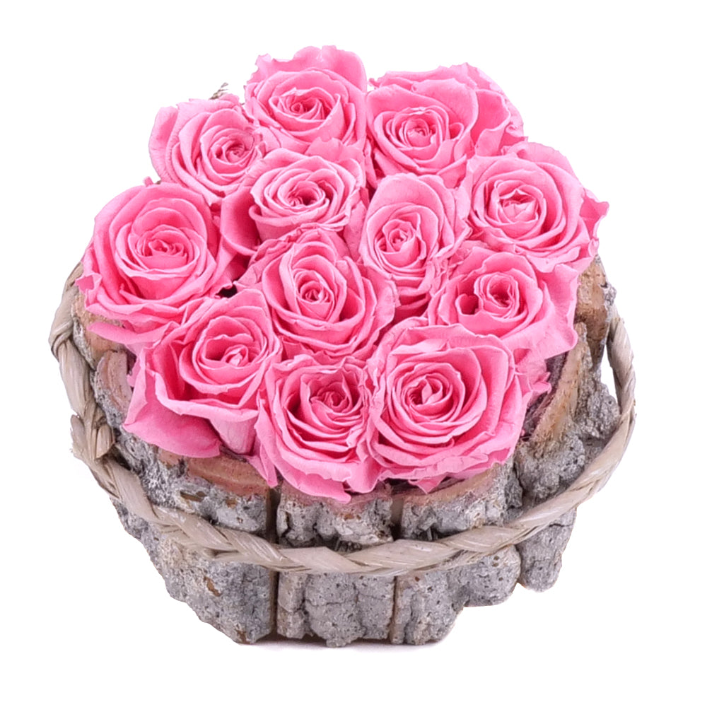In eterno drevený box 12 ruží Monalisa Madeleine Pink