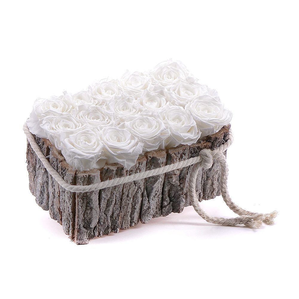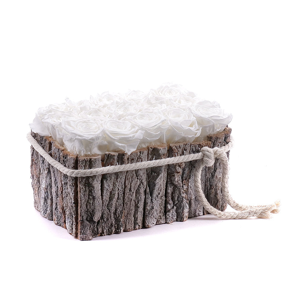 Potešte svojich blízkych a darujte im elegantný drevený box s luxusnými In Eterno bielymi ružami.