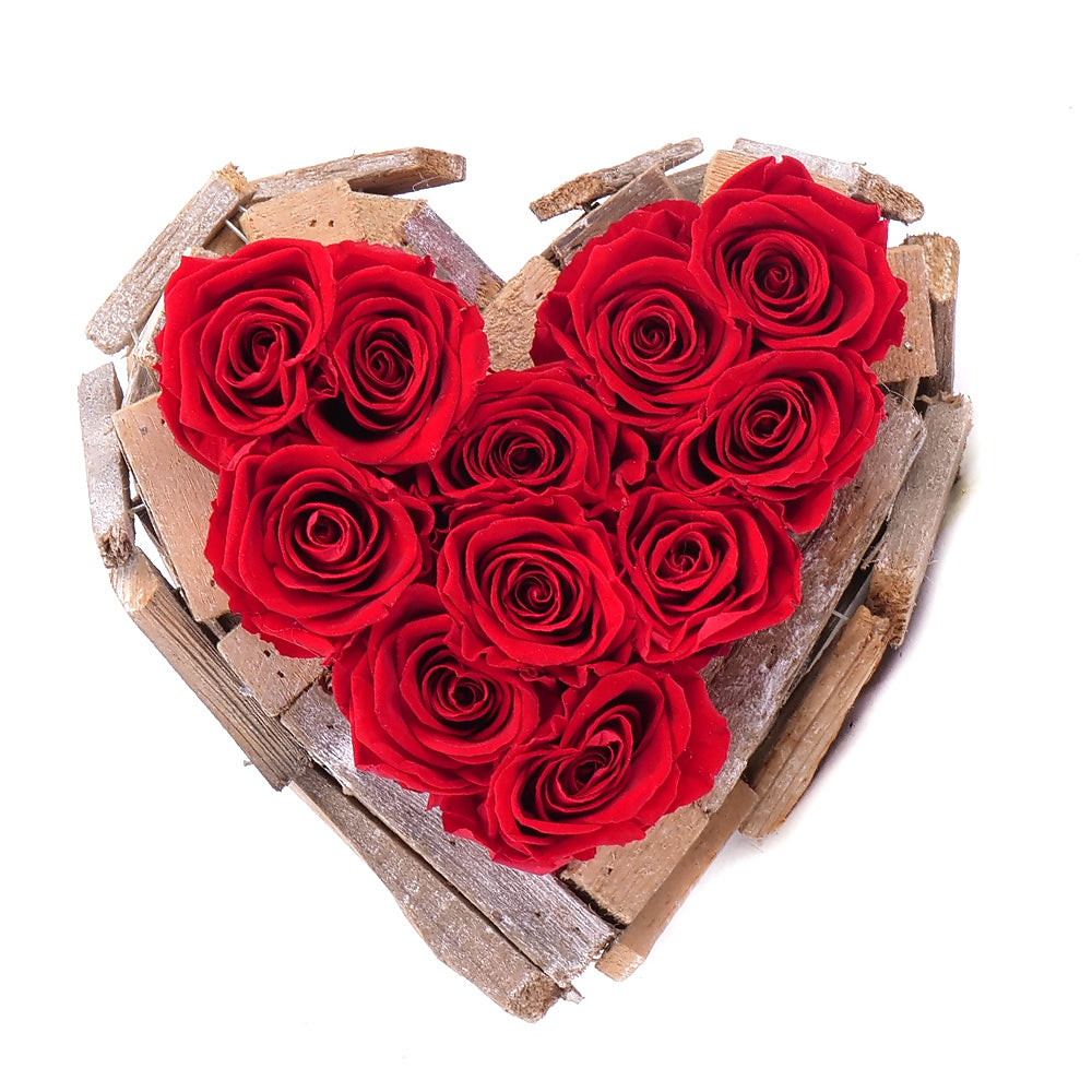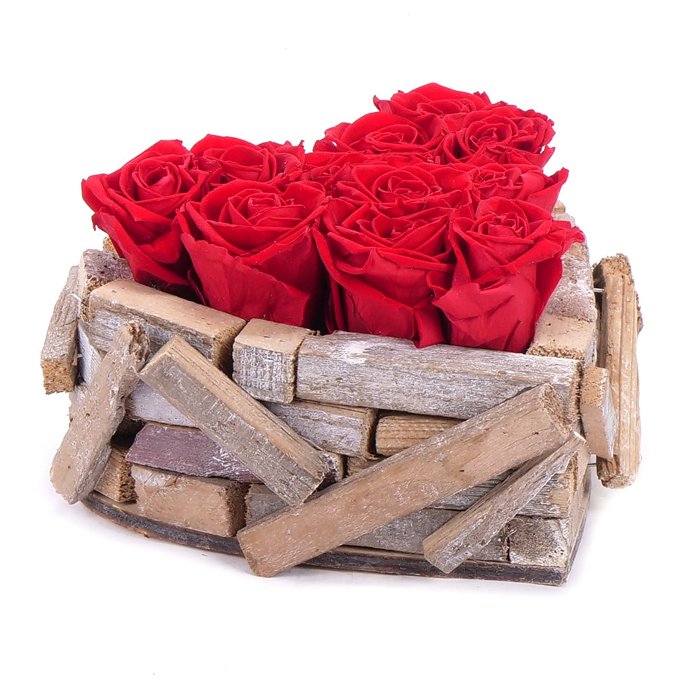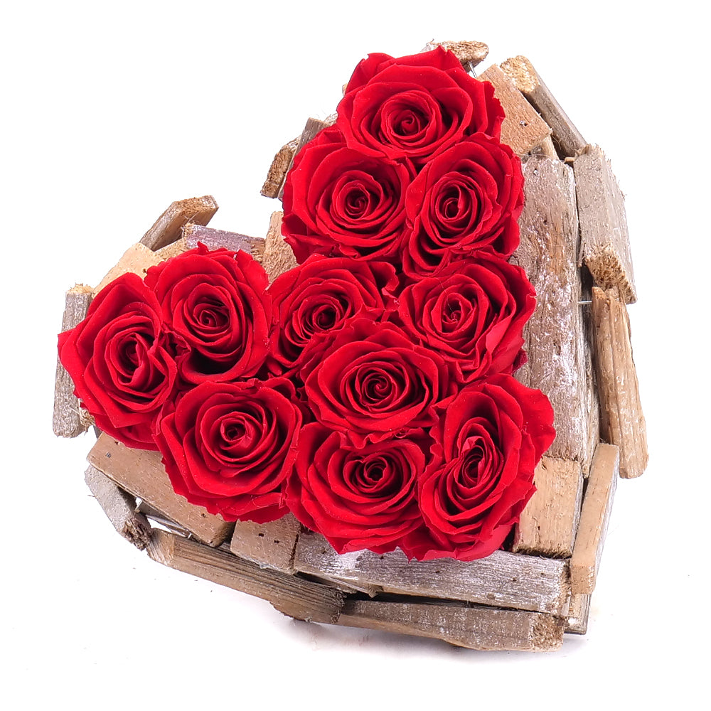 In eterno drevený box srdce 11 červených ruží