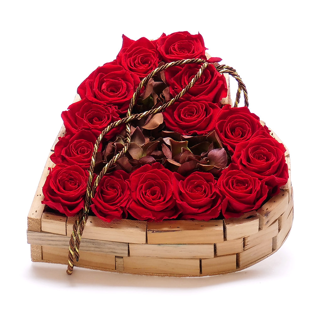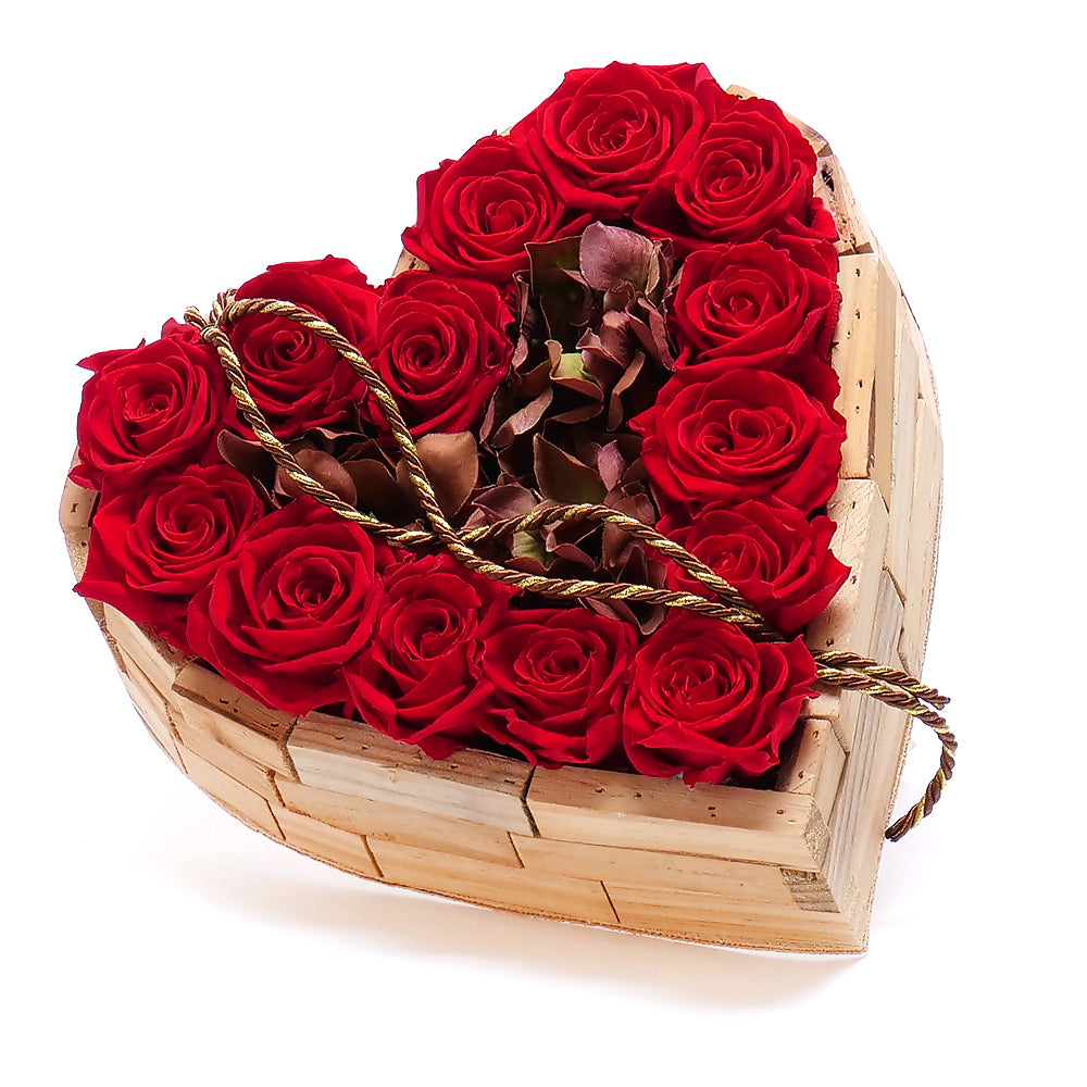 Exkluzívny drevený box s In Eterno večnými ružami, doplnený dekoračnou šnúrou a umelou hortenziou. Čítať viac