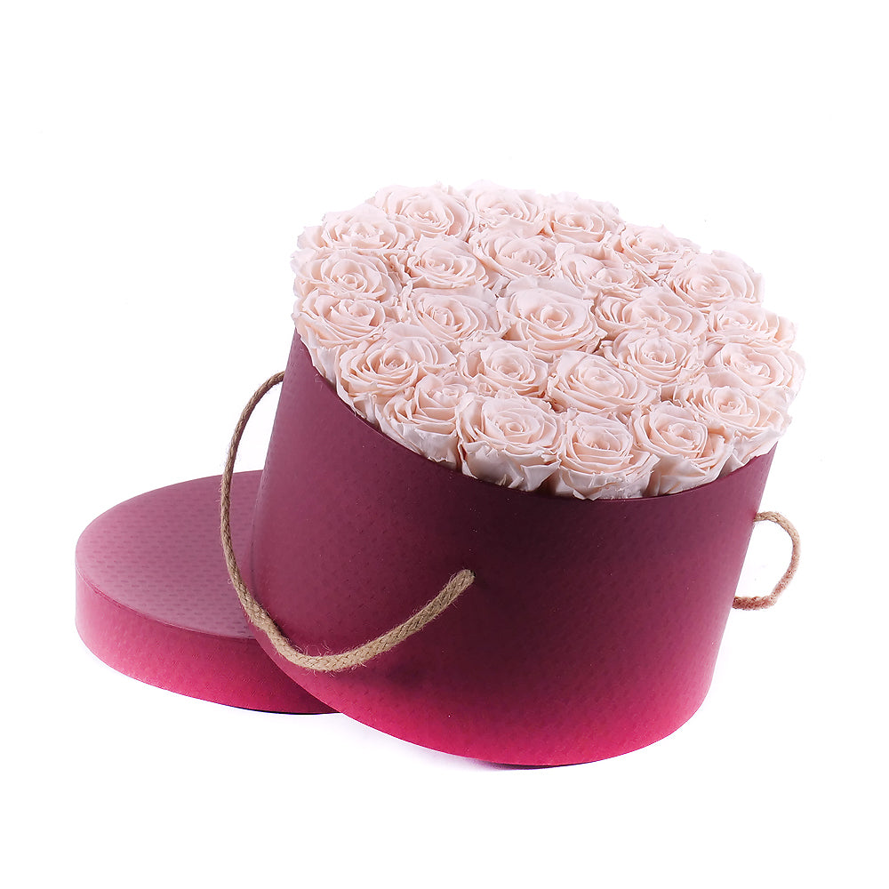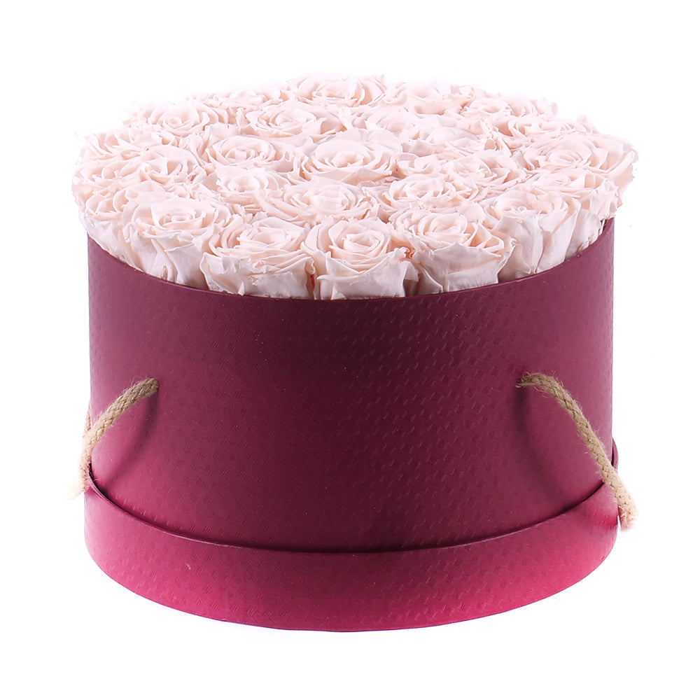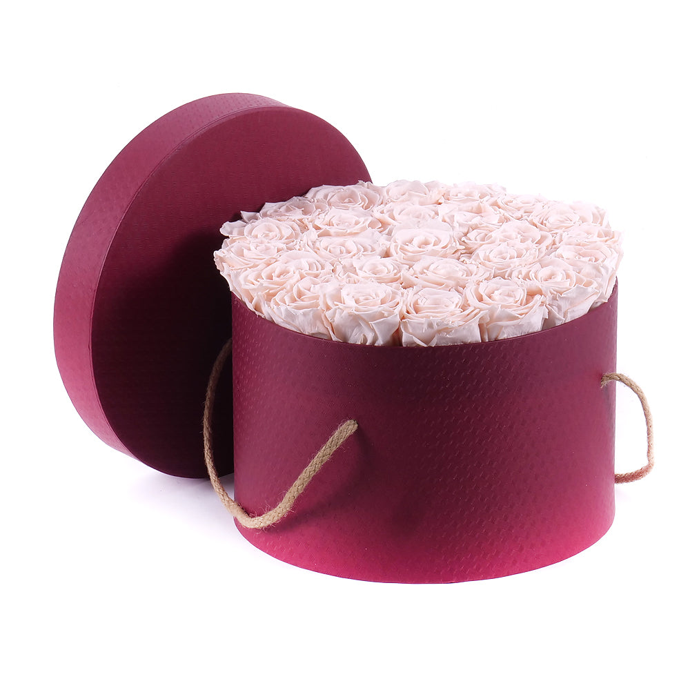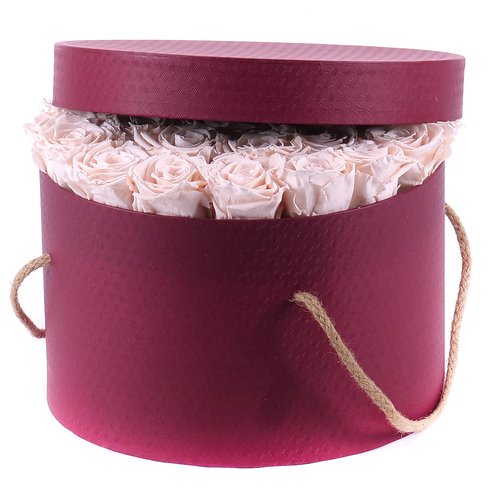 In eterno okrúhly bordový box ratan "L" 25 krémových ruží
