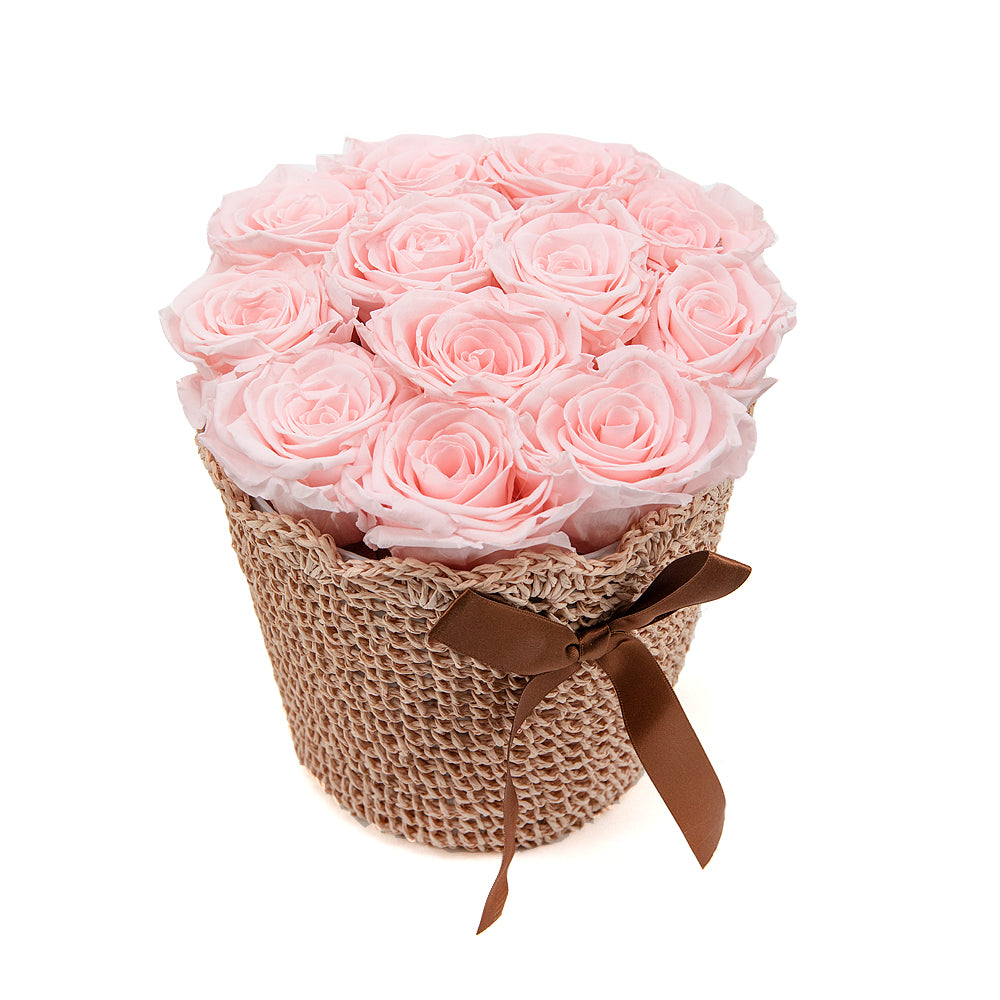 In eterno pletený košík 12 ružových ruží