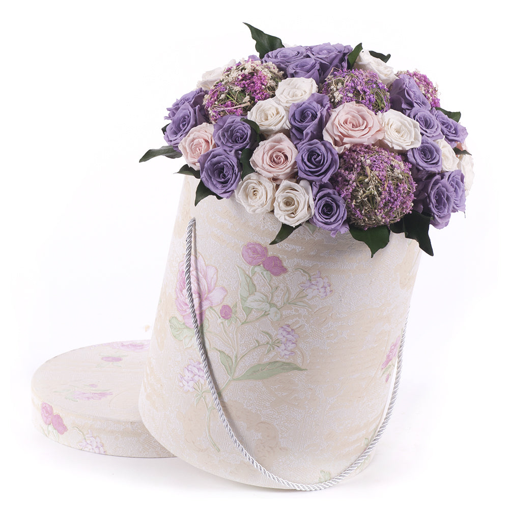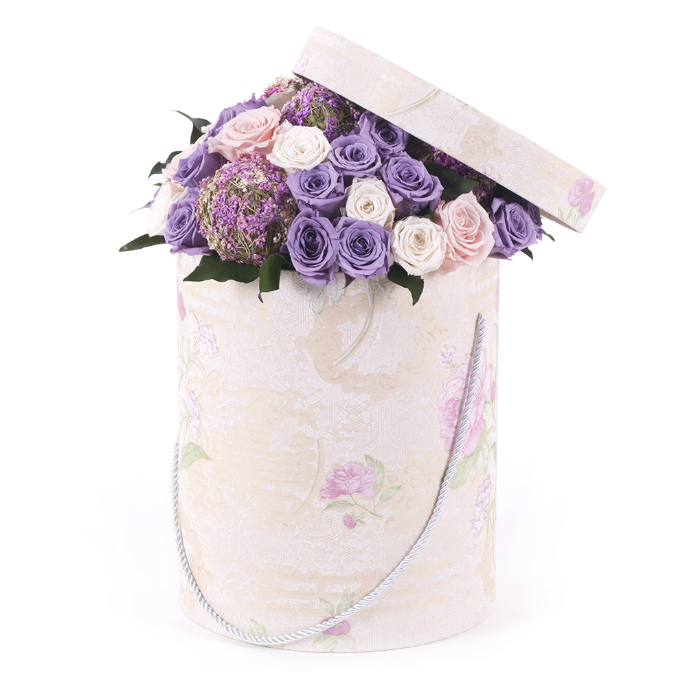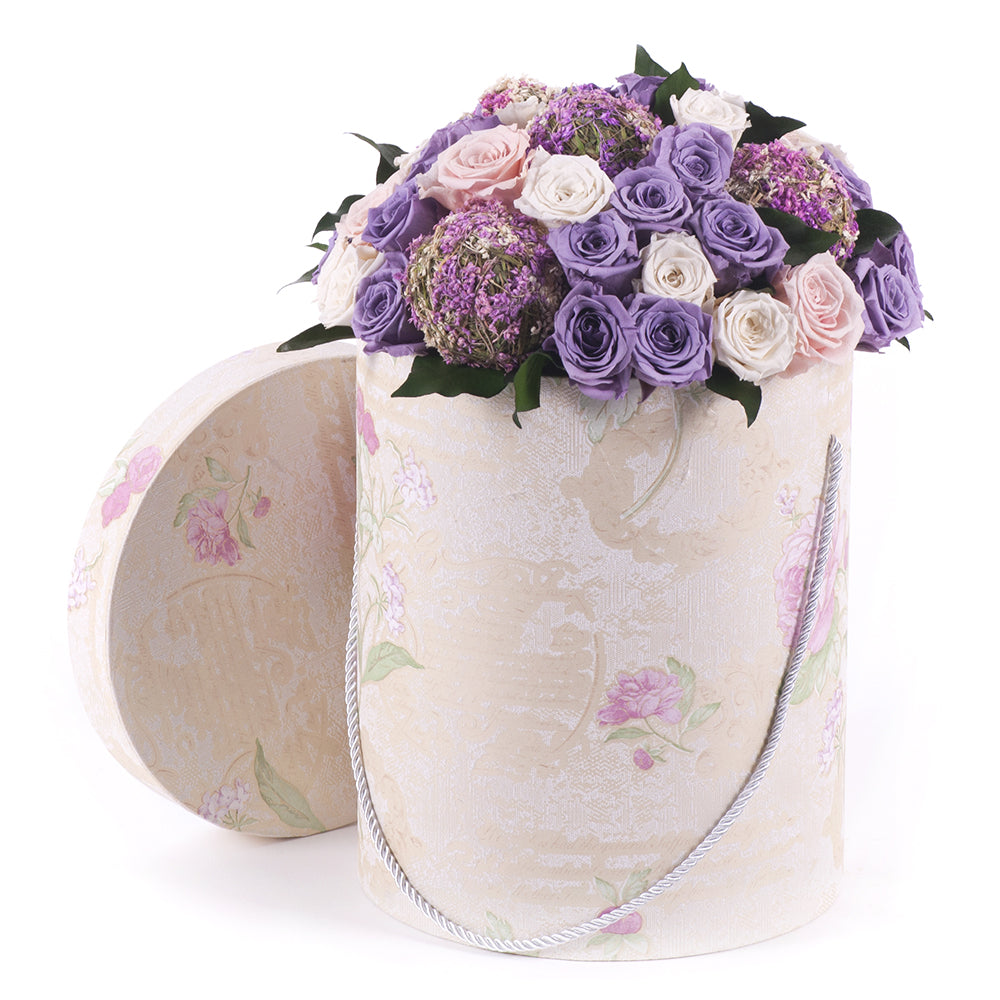 In eterno vintage okrúhly box "L" farebné ruže a latabally