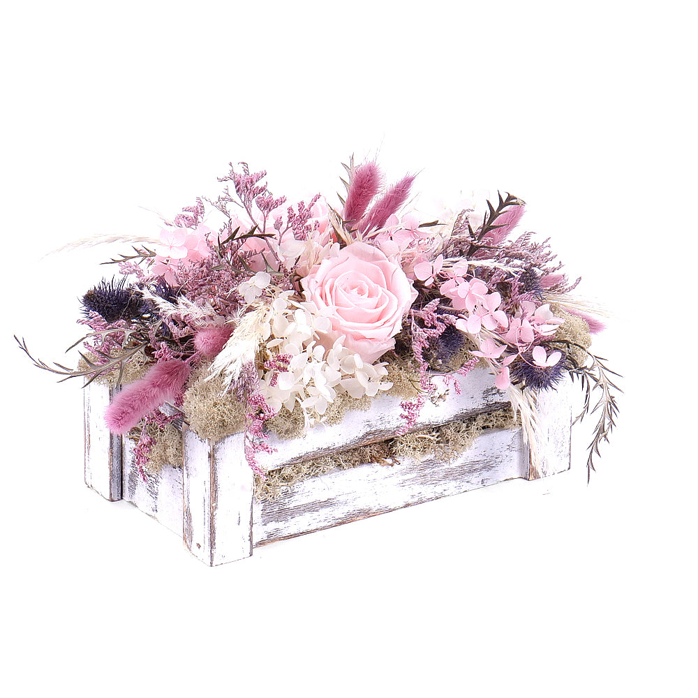 Aranžmán je dokonalou kombináciou jemnosti a elegancie, ktorá vyjadruje večnú krásu a spomienku. Tento kvetinový výtvor v sebe nesie nádhernú... Čítať viac
