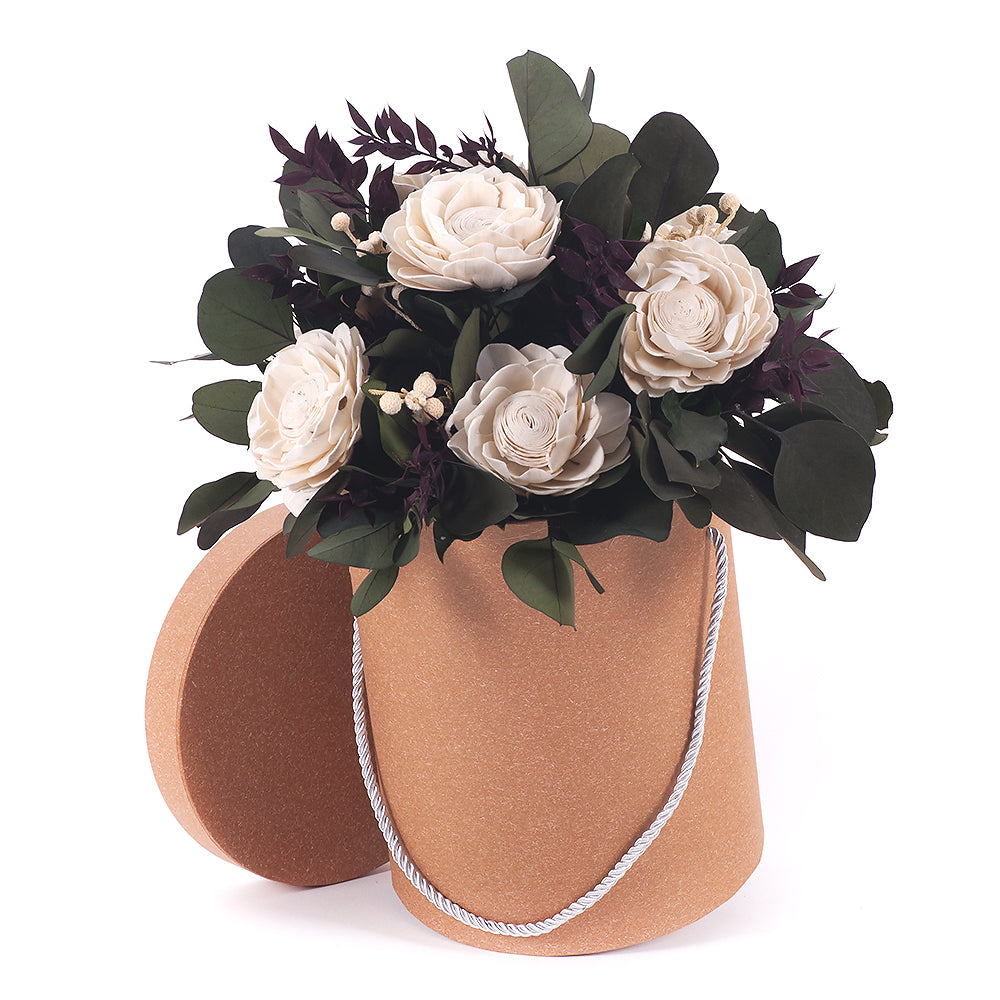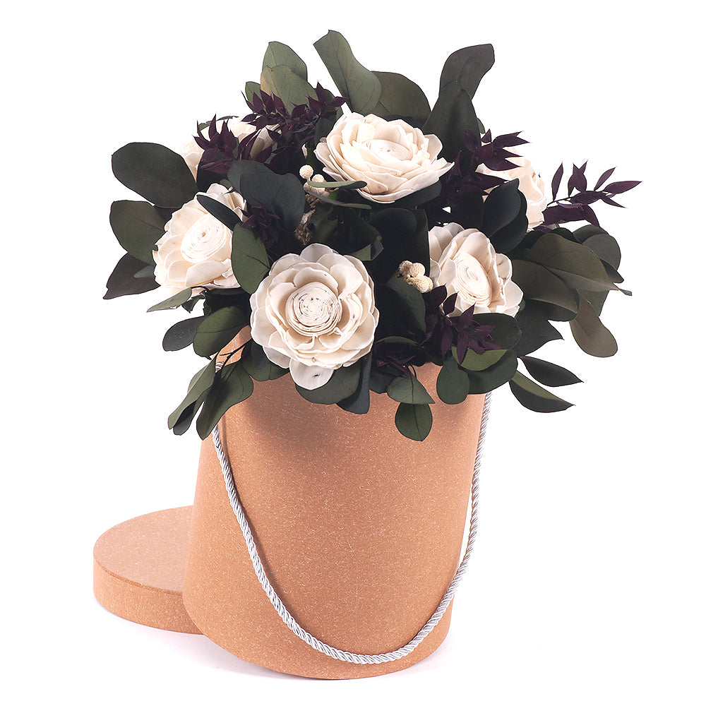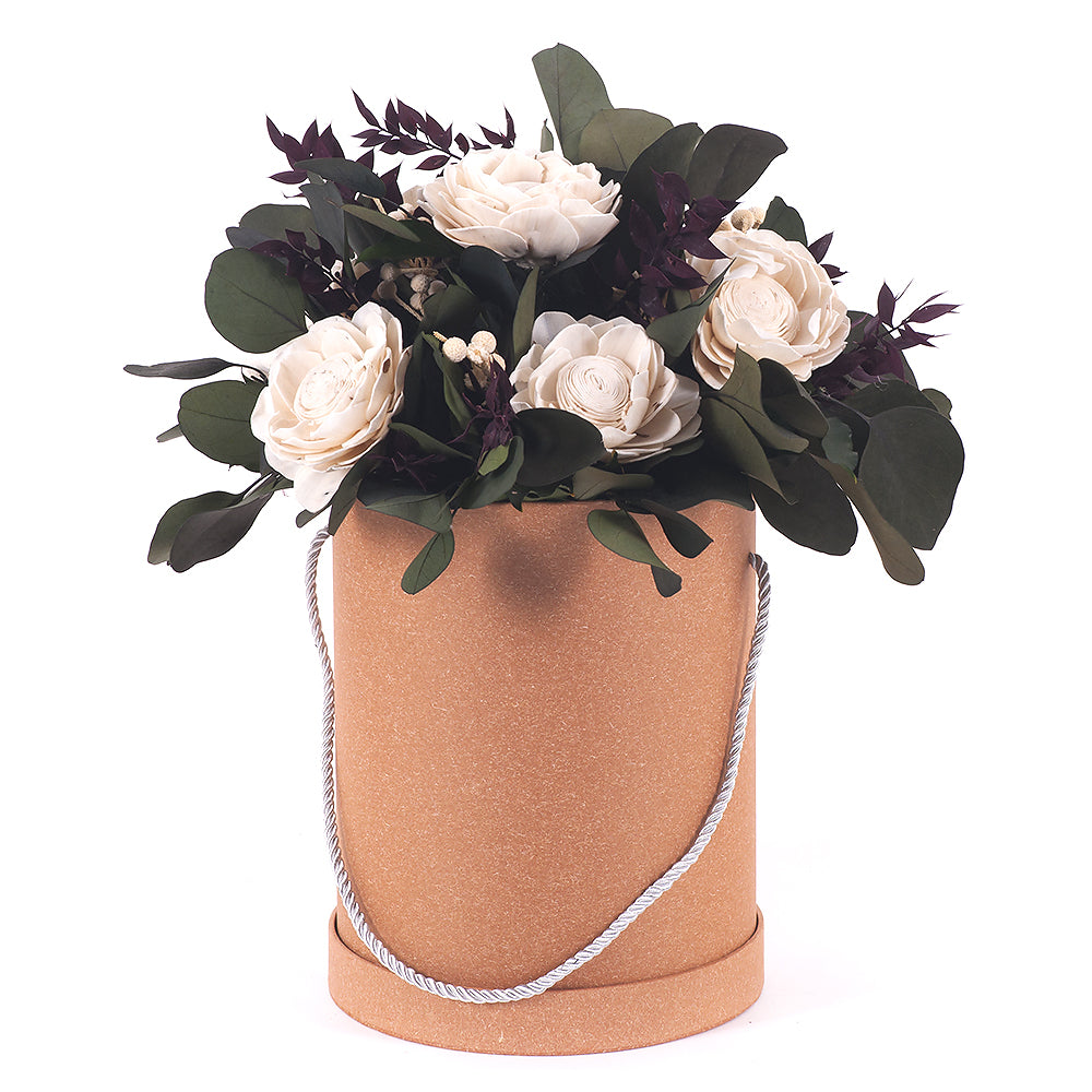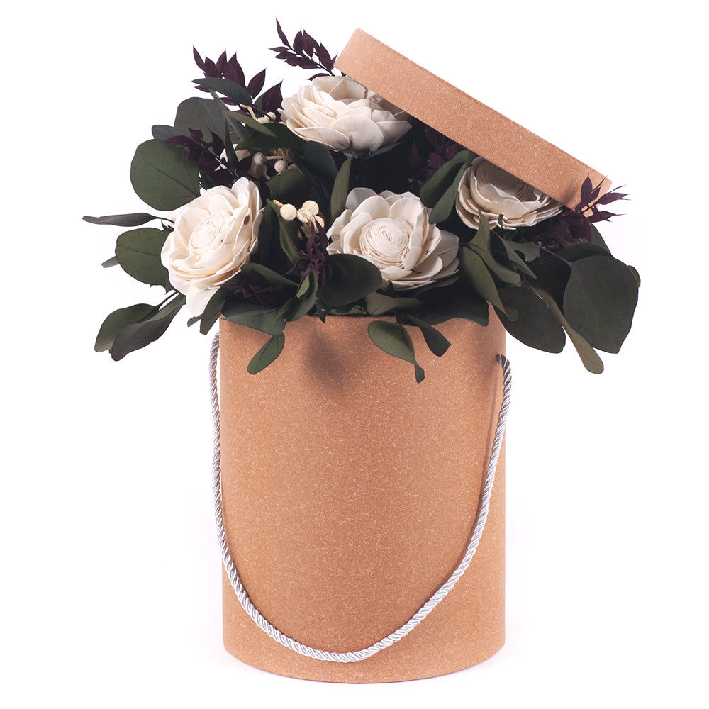Netradičný aranžmán v hnedom boxe, ktorý spríjemní Vašu domácnosť a navodí teplo domova s bielymi Irigo kvetmi, ruskusom a brúniou. Čítať viac
