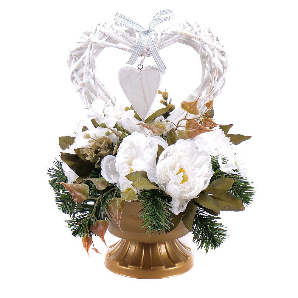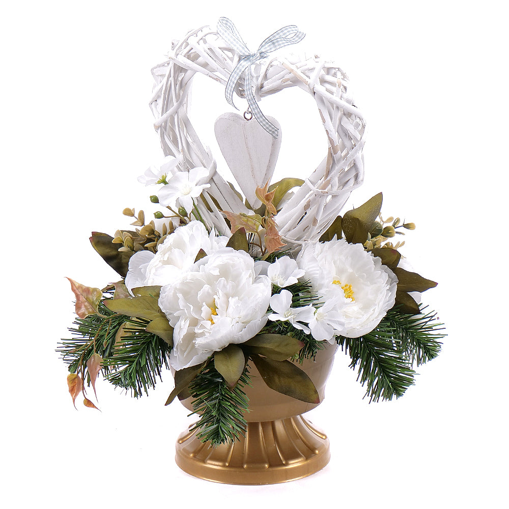 Uctite si tých, ktorí Vám chýbajú, aranžmánom tvoreným z umelých kvetov bielo - krémovej farby s prúteným srdcom. Smútočné aranžmány... Čítať viac