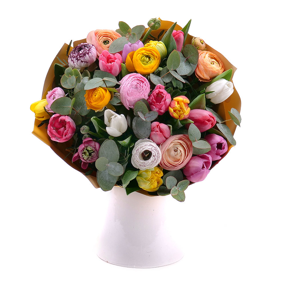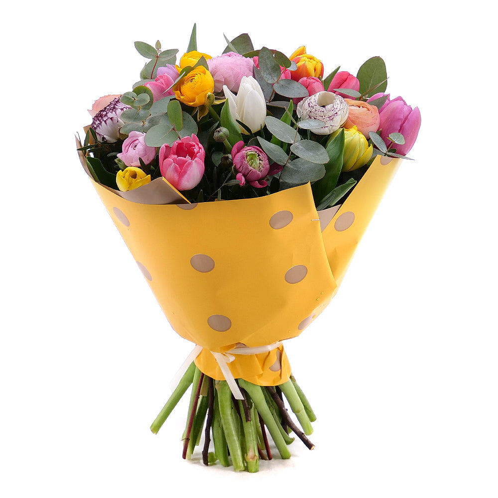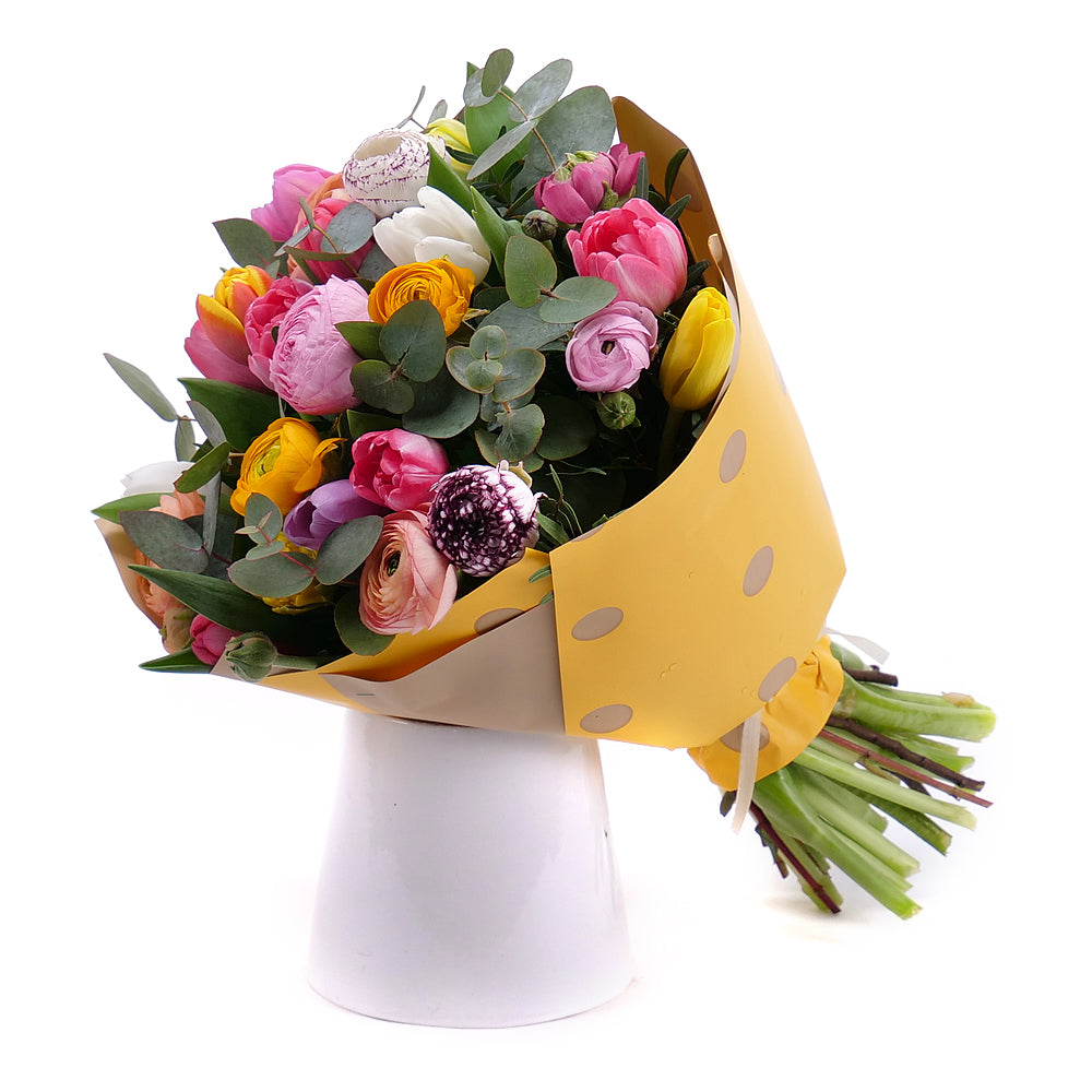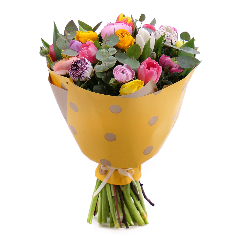 Kytica z farebných kvetov doplnená dekoračnou zeleňou a ozdobným papierom. Kytica poteší na sviatok alebo len tak vo všedný deň. Čítať viac