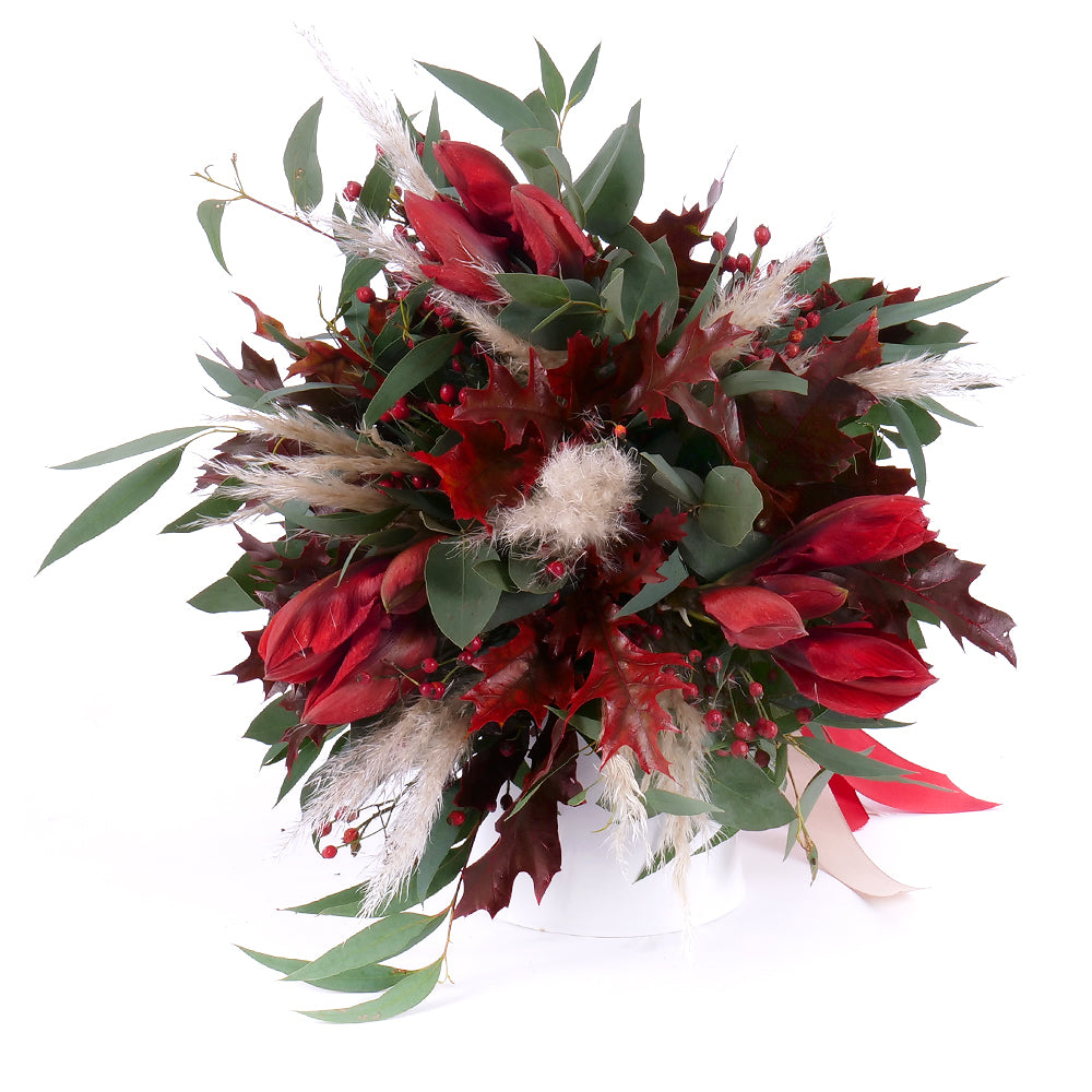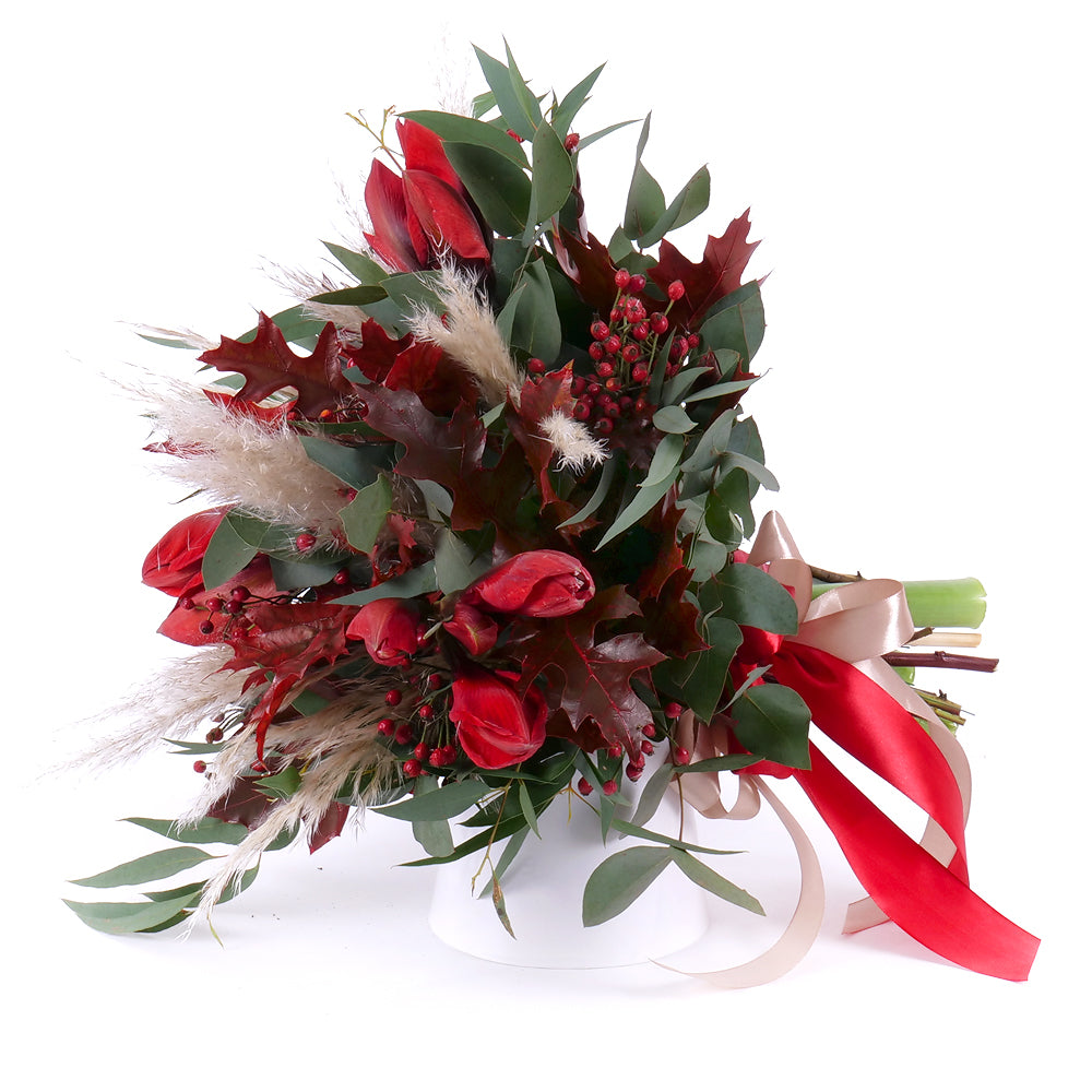 Táto elegantná kytica spája krásu amarylisov s jemnosťou eukalyptu. Táto kombinácia vytvára kyticu plnú kontrastov, ktorá je ideálna na špeciálne príležitosti, keď chceme vyjadriť a vytvoriť nezabnuteľný dojem.