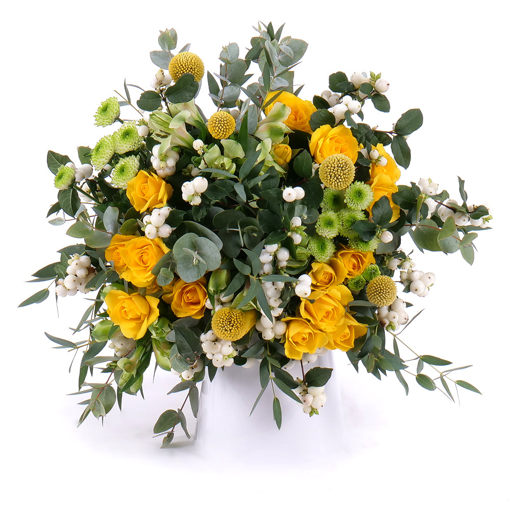 Kytica aranžovaná z trsových ruží, alstromérií, chryzantém a dekoračnej zelene v jemnej žlto bielej kombinácií. Čítať viac