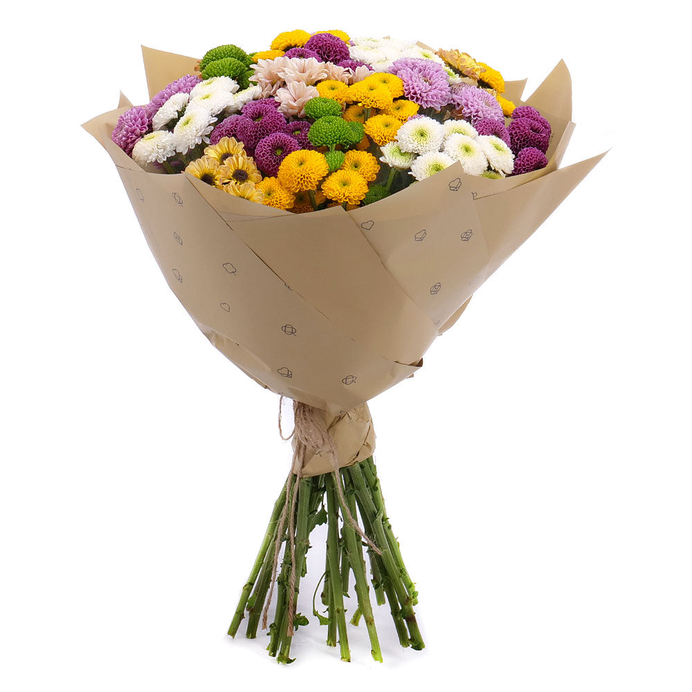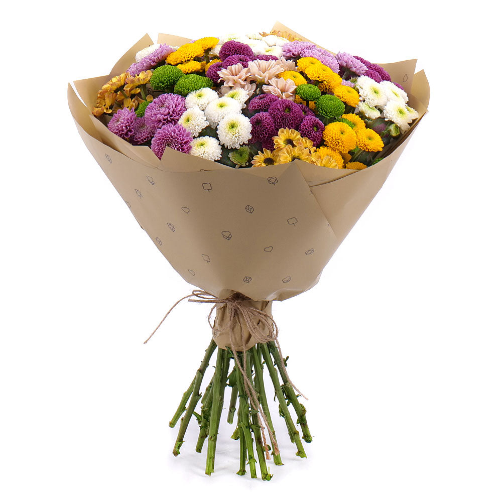 Živá kytica zo santín je elegantnou a sviežou voľbou, ktorá pôsobí optimisticky a moderne. Santíny, známe aj ako chryzantémy, vynikajú svojou bohatosťou kvetov, dlhou trvácnosťou a jemnou vôňou. Táto kytica je ideálna na každodenné potešenie, no zároveň d
