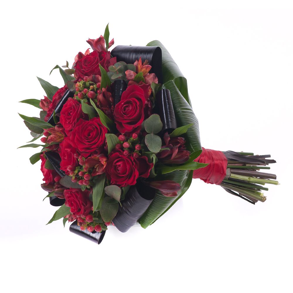 Darujte elegantnú kyticu aranžovanú z kombinácie červených ruží a hyperica. Kytica vhodná na oslavu výnimočných dní ako sú meniny, narodeniny, promócie, ale aj pre potešenie počas všedných dní.