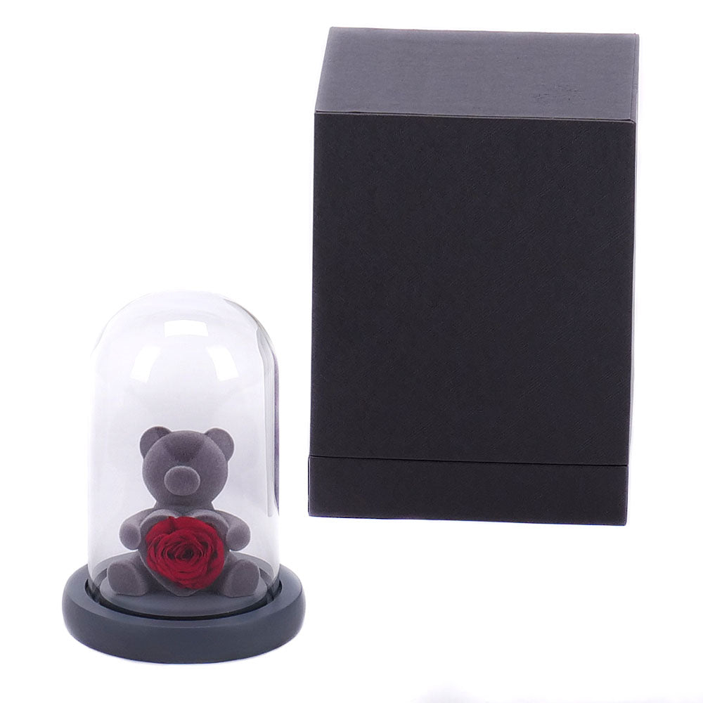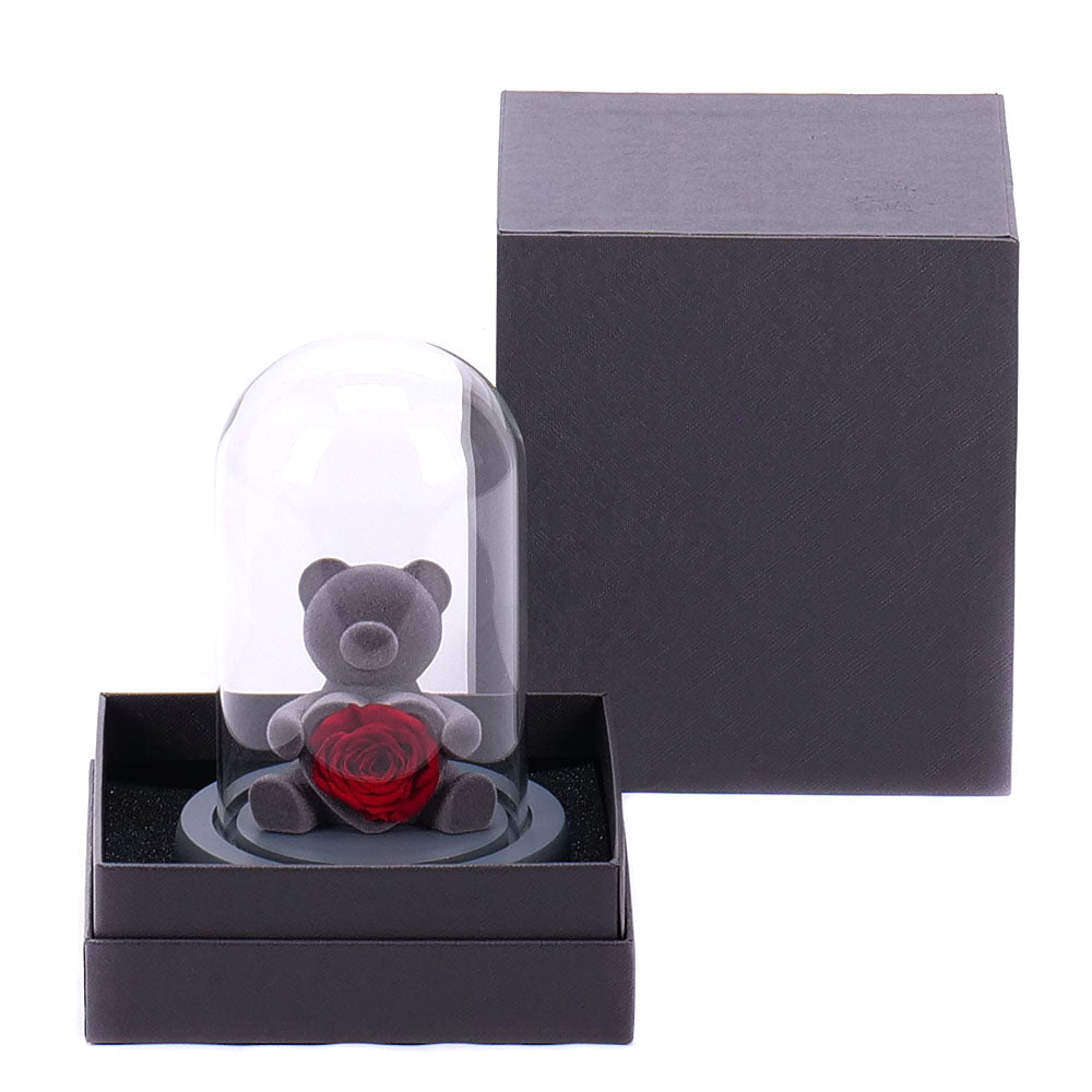 Medvedík v sklenenej skrinke s LED osvetlením a dekoračnom darčekovom boxe.