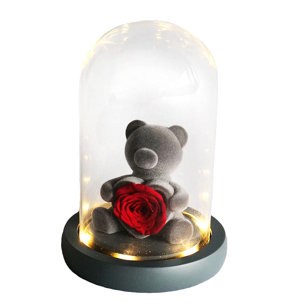 Medvedík s ružou a LED osvetlením 10x15cm E65