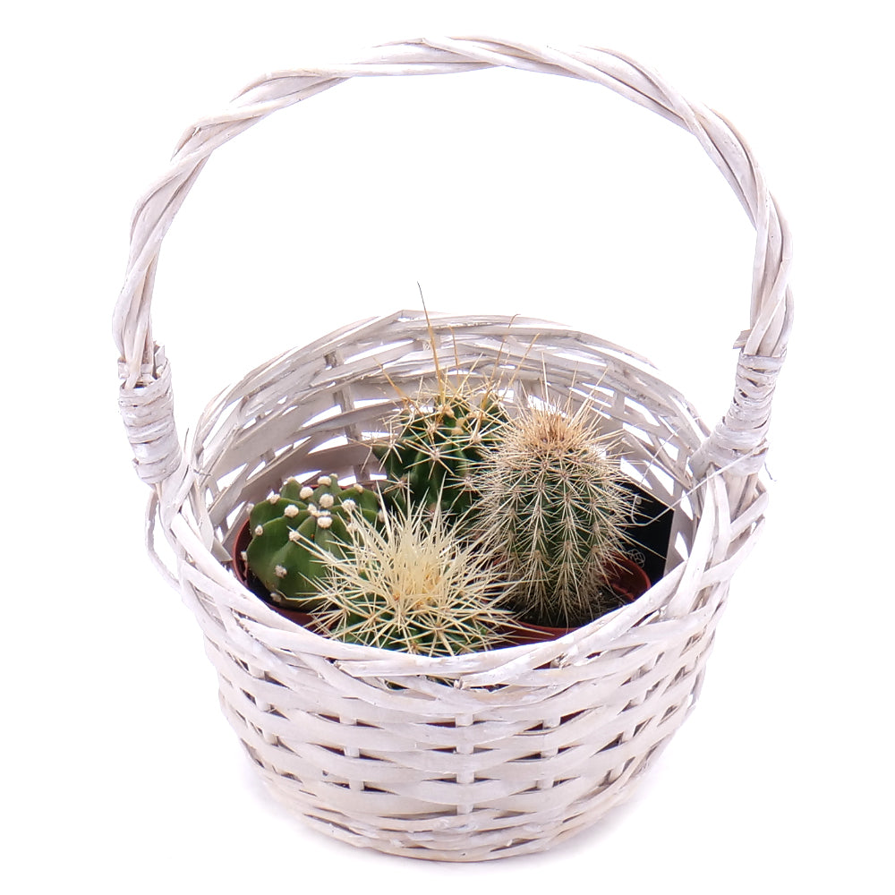 Mini kaktusy v prútenom košíku