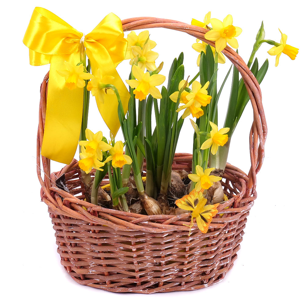 Narcisy v prútenom košíku